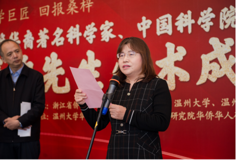 研讨会第一阶段为钱煦院士学术成就展开幕式,浙江省侨联兼职副主席、温州市侨联党组书记、主席郑宏国主持开幕式。中国华侨华人研究所副所长张秀明宣读钱煦院士贺电。