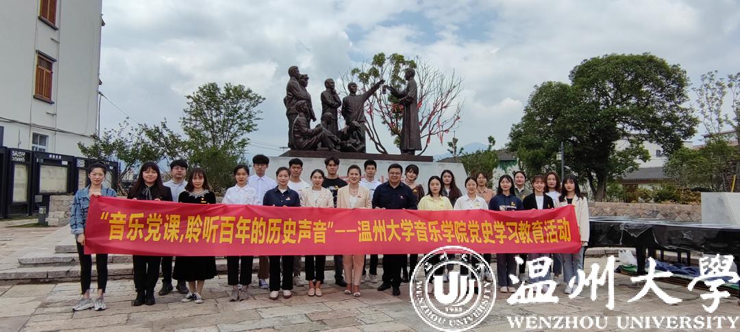 中国共产党百年华诞之际,sunbet申愽官网“音乐党课”在瓯海区仙岩街道浙南一大会址前正式开讲,sunbet申愽官网音乐学院教工第一党支部书记、副教授、硕士生导师张潇潇博士为学生党员带来题为《红梅赞——征程岁月中英勇不屈的革命之花》的首期讲演。