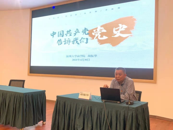 最后,商学院院长胡振华教授开启金融党课第一讲。他以中国革命战争史中毛泽东的贡献为主线,深入浅出、如数家珍地为大家分享党的诞生和发展过程中的大量史实,充分肯定中国共产党是一个学习型政党,作为商科学院和金融行业的基层党组织更要在学习实践中努力学习和弘扬实事求是、与时俱进等党的优良作风。