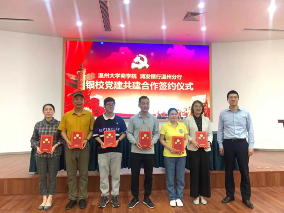 仪式上,双方还为商学院校外实践教育基地授牌,浦发银行温州分行聘请学院六位教工支部书记为金融党课讲师暨智库专家。