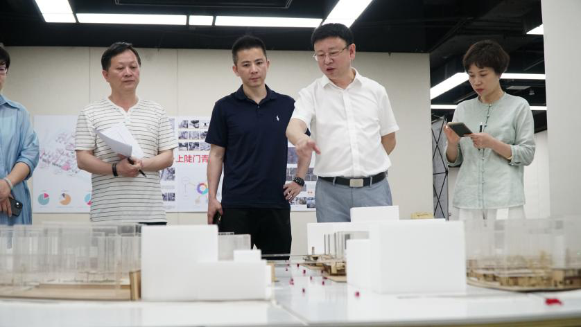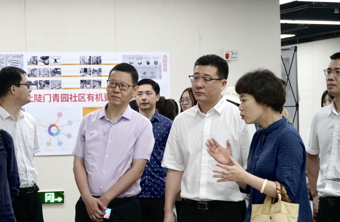 随后,各领导及嘉宾参观毕业设计成果展,建筑系教授赖平平逐一介绍各课题组成果。各领导对成果展给予高度评价,希望加快推动政产学研的合作项目。