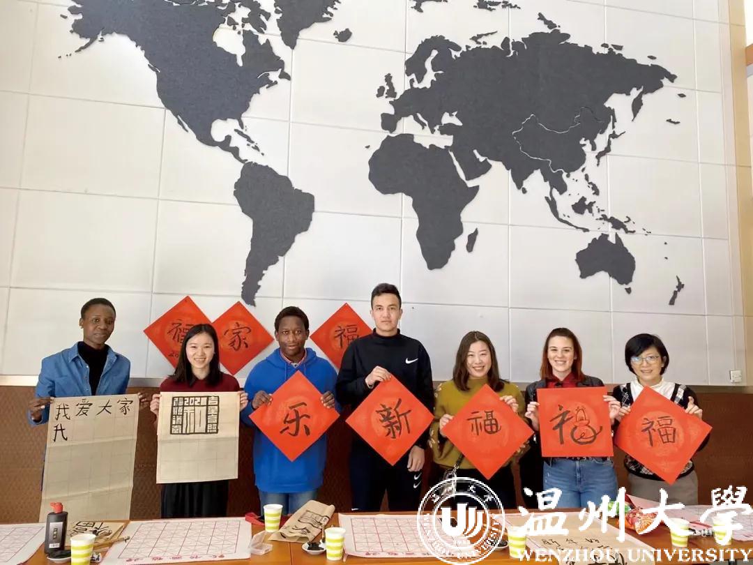 农历牛年前夕,“写‘福’字、贴春联、挂灯笼”,迎接传统节日的喜庆气氛弥漫在sunbet申愽官网国际教育学院,来自越南的2020级汉硕留学生代表陈氏玉映与尼日利亚、津巴布韦、土库曼斯坦、意大利等国的留学生,跟着sunbet申愽的老师们一同体验中国年味、感知中国文化,感受浓浓的“温”情年味。