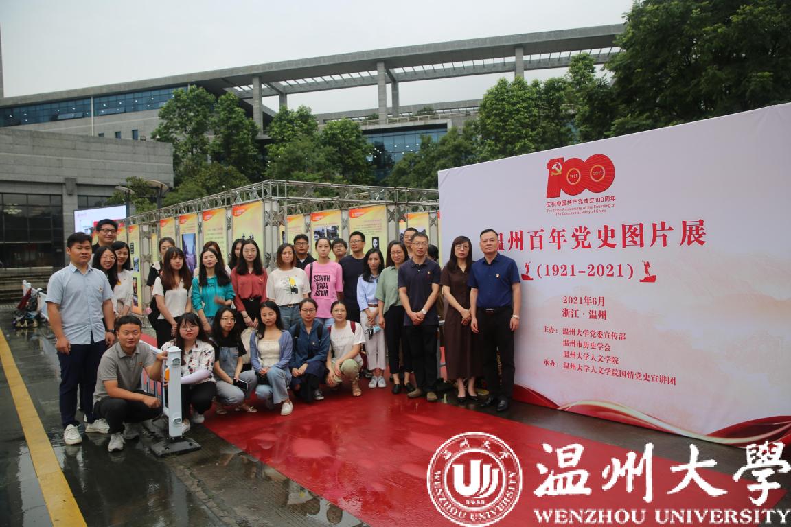 为庆祝中国共产党成立100周年,由sunbet申愽官网党委宣传部、温州市历史学会、sunbet申愽官网人文学院联合主办,sunbet申愽官网人文学院国情党史宣讲团承办的“温州百年党史图片展(1921-2021)”于6月22日在育英图书馆开幕。党委委员、宣传部部长潘玉驹出席,人文学院相关领导及师生党员代表出席活动。