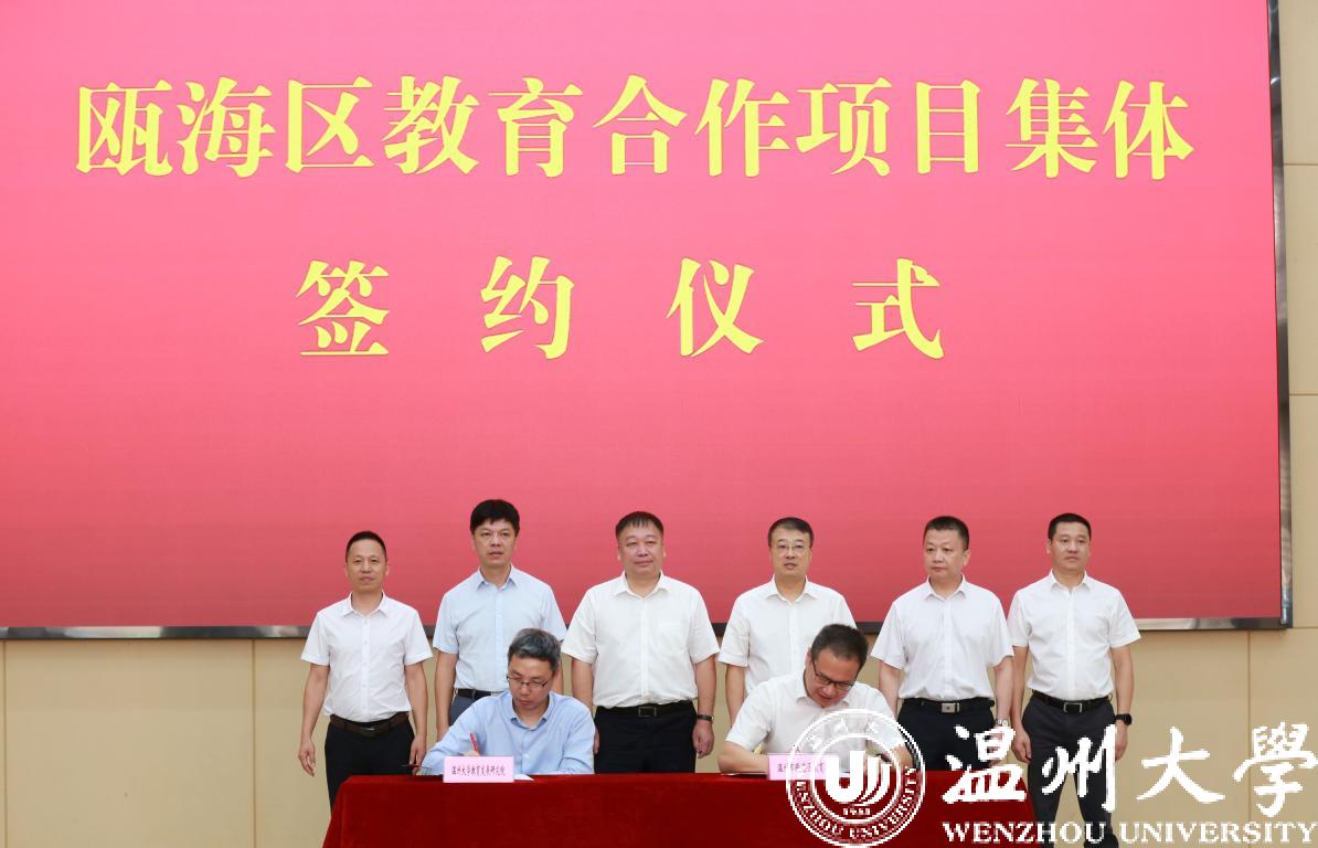 9月3日,瓯海区举行教育合作项目集体签约仪式,sunbet申愽官网附属学校(温州榕园学校)正式签约并授牌。sunbet申愽官网校长赵敏、副校长王舜,瓯海区委书记王振勇,副书记、区长曾瑞华,温州生态园管理委员会书记、主任陈朝明,温州市教育局党委委员郑为民等出席签约仪式。