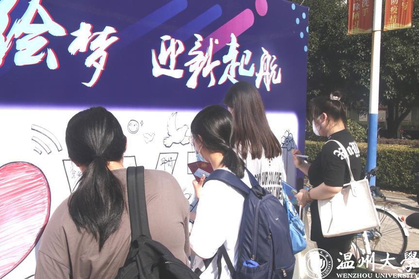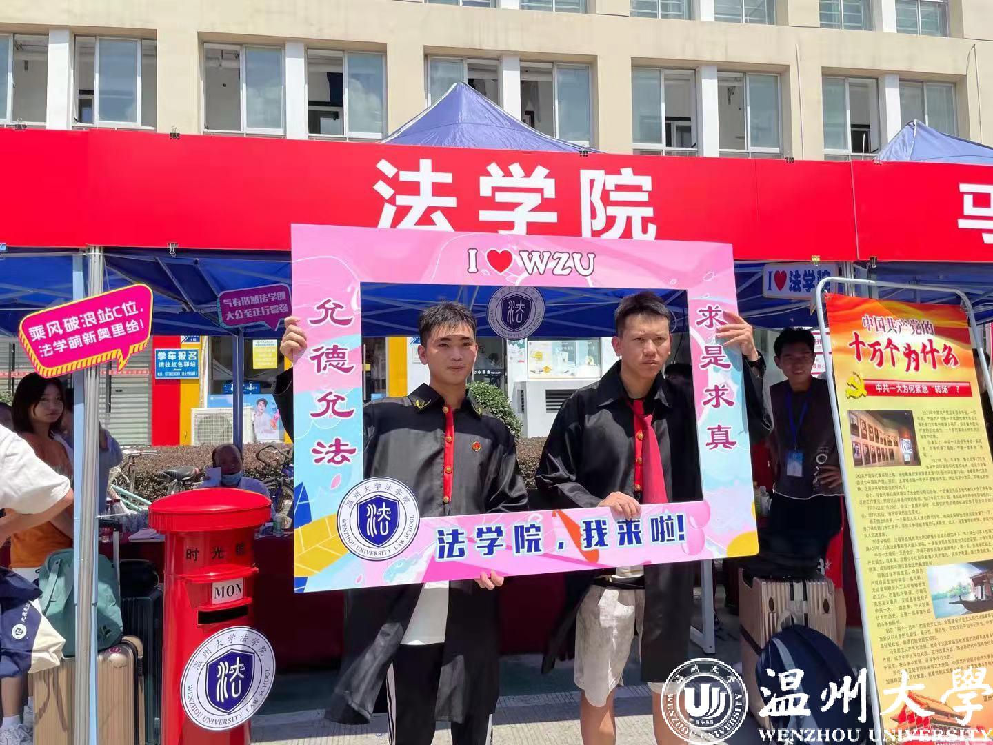 学校在迎新过程中还融入职业生涯规划的内容,新生“法袍”“律师袍”试穿,在入学第一天就感受到职业魅力;现场挑战“数学家”,体验科学真谛,树立科学理想;现场抽盲盒与考研榜样“牵手”,翻开探求真理新篇章;“一个规划”启未来,“五育成长”定目标,开启求学新航程。