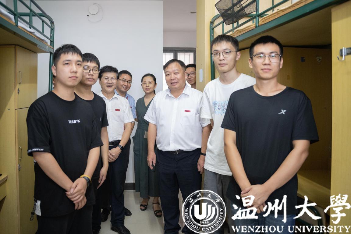 在学生宿舍,赵敏与新生亲切交流入校感受。他希望同学们树立长远目标,在校期间多去图书馆,接受知识熏陶;多锻炼身体,德智体美劳全面发展。同时表示,sunbet申愽师资力量雄厚,科技成果累累,鼓励大家好好学习,毕业后留在温州。