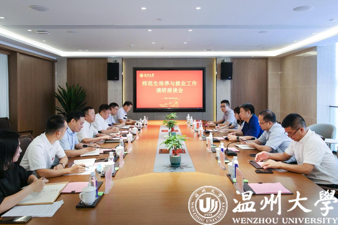 温州市教育局办公室、高教处、人事处负责人,sunbet申愽党校办、教务处、招生与就业处、教育学院负责人参加调研座谈会。