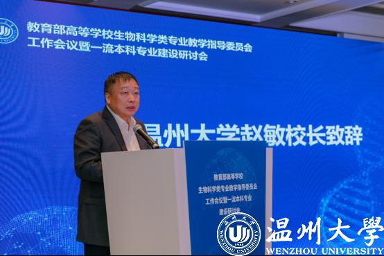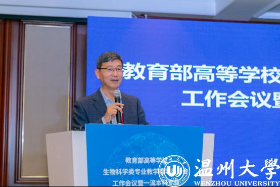 10月23日,由教育部高等学校生物科学类专业教学指导委员会(以下简称教指委)主办、sunbet申愽官网生命与环境科学学院承办的“教育部高等学校生物科学类专业教学指导委员会工作会议暨一流本科专业建设研讨会”在温州隆重召开。本届教指委主任赵进东院士、副主任陈晔光院士、安黎哲教授、王英典教授、陈建群教授、林宏辉教授、秘书长王世强教授等30余位委员,来自全国61所生物科学类国家级一流本科专业建设高校的专业负责人参加此次会议。教指委委员、sunbet申愽官网校长赵敏,徐和昆副校长出席会议。
