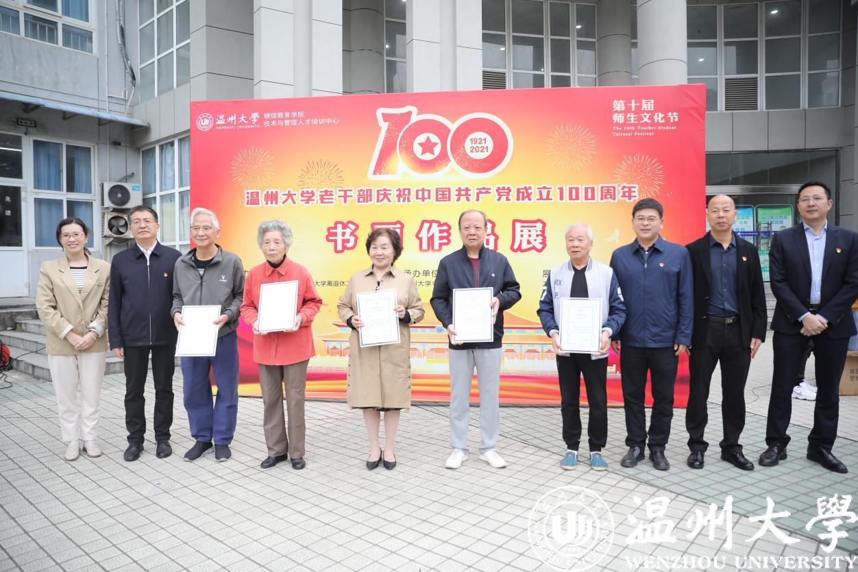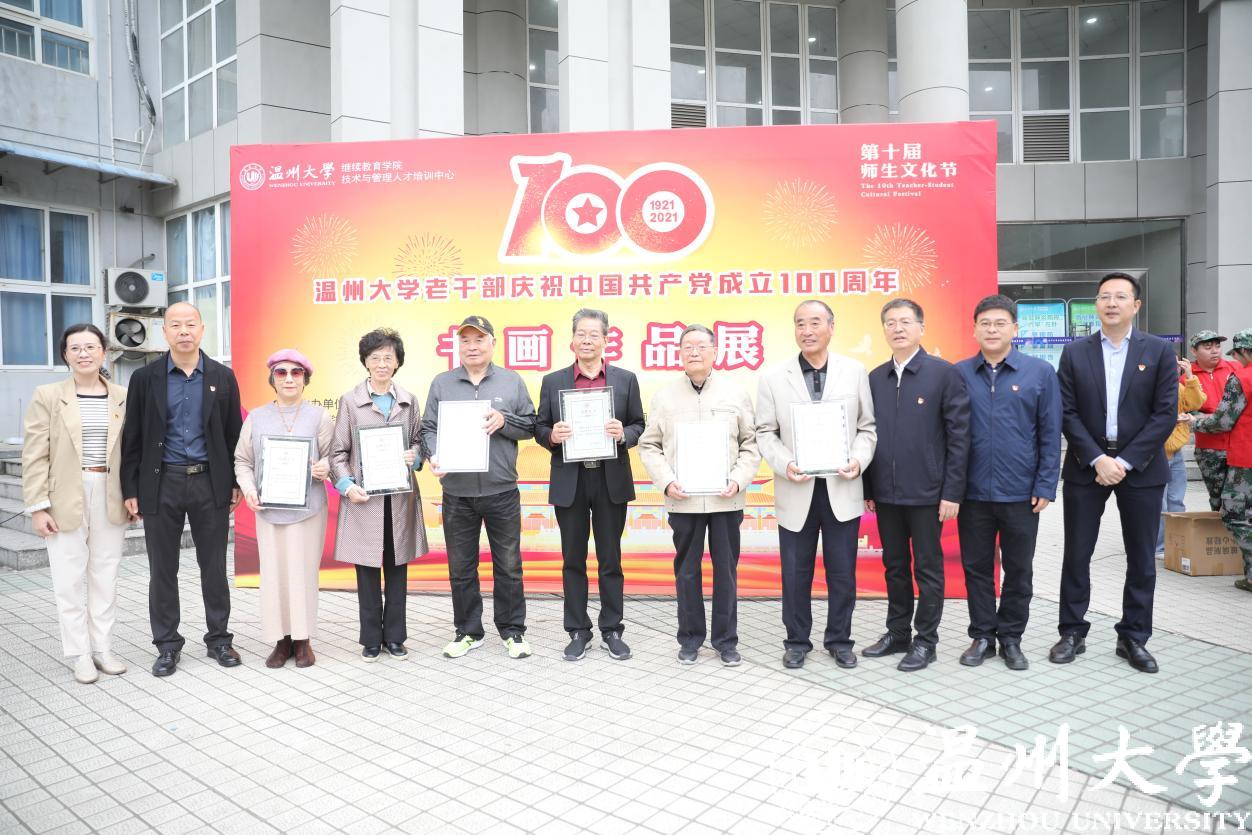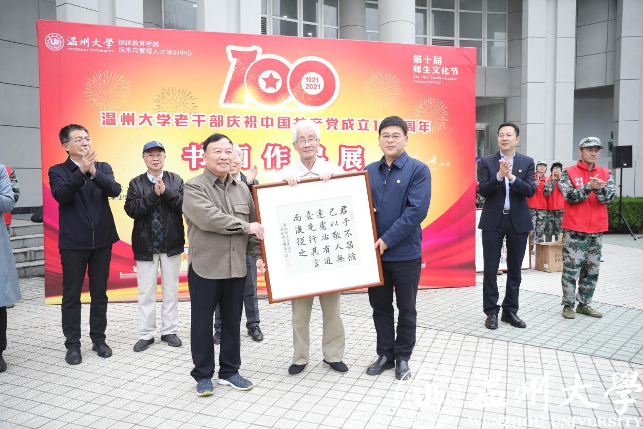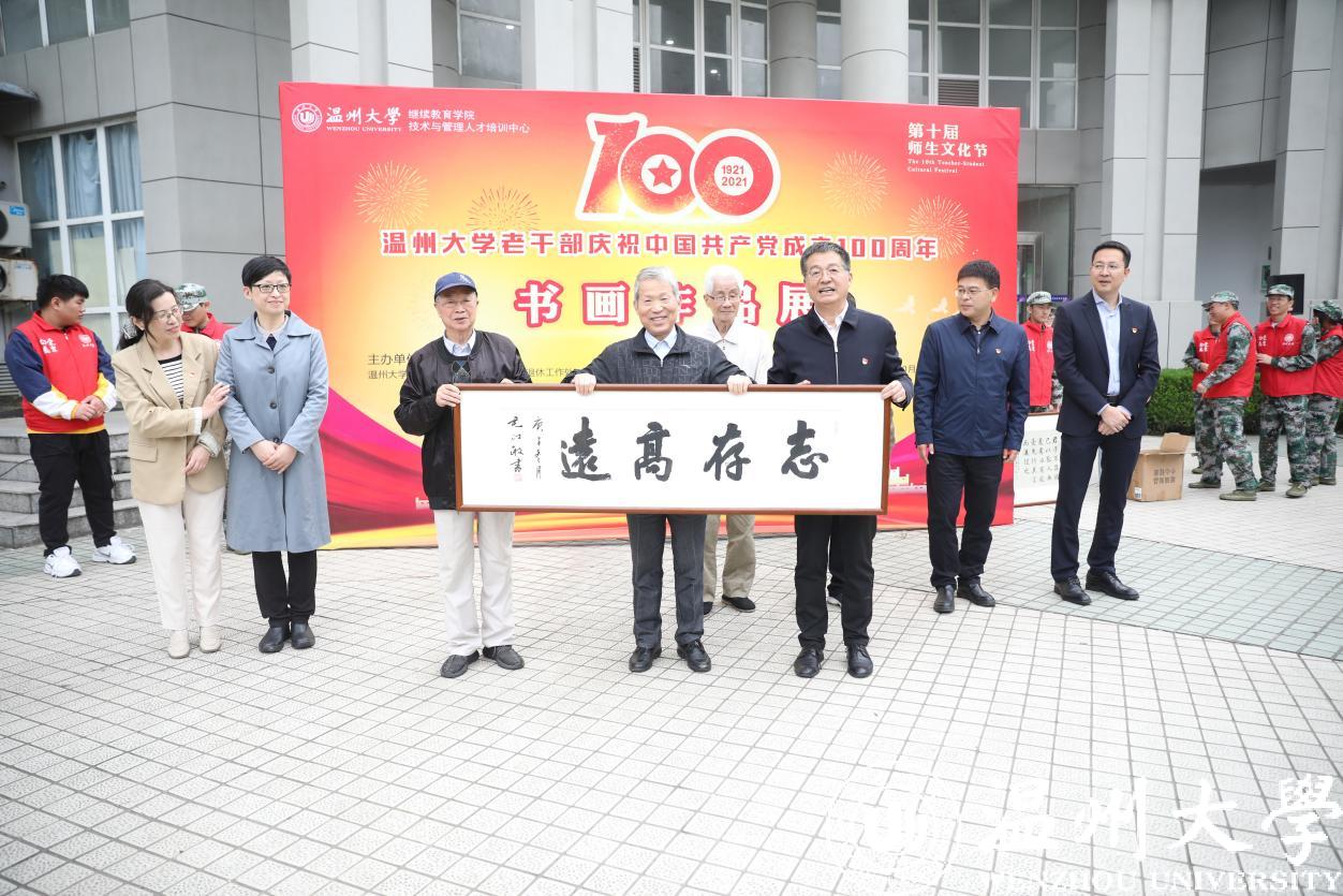 丹青绘百年,翰墨书党恩。10月26日上午,sunbet申愽官网老干部庆祝中国共产党成立100周年书画作品展开幕式暨老干部书画院书画作品捐赠仪式在sunbet申愽学院路校区举行。离退休老领导金礼义、林选青、毛政敏,sunbet申愽官网老干部书画院院长冯大明、艺术指导师沈洪保副教授等离退休老干部,离退休处、继续教育学院负责人以及师生代表出席开幕式。