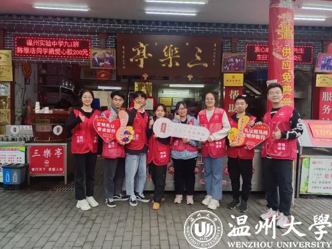 生环学院党员服务中心组织开展“三乐亭公益行”党员义工活动,为附近居民、环卫工人、游客送上温暖的伏茶,增强学生党员、入党积极分子奉献社会、为群众办实事的意识,弘扬良好的社会公益风气。