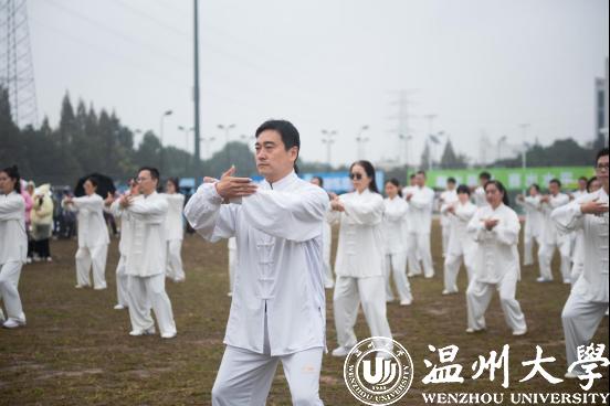 教工太极拳协会及体育与健康学院百名师生共同演绎开场太极表演《八法五步》。一身身白衣形成了一道靓丽的风景线,师生们动作行云流水、拳法急缓相间、一气呵成,给全体sunbet申愽师生带来了一场视觉盛宴,赢得了全场雷鸣般的掌声。