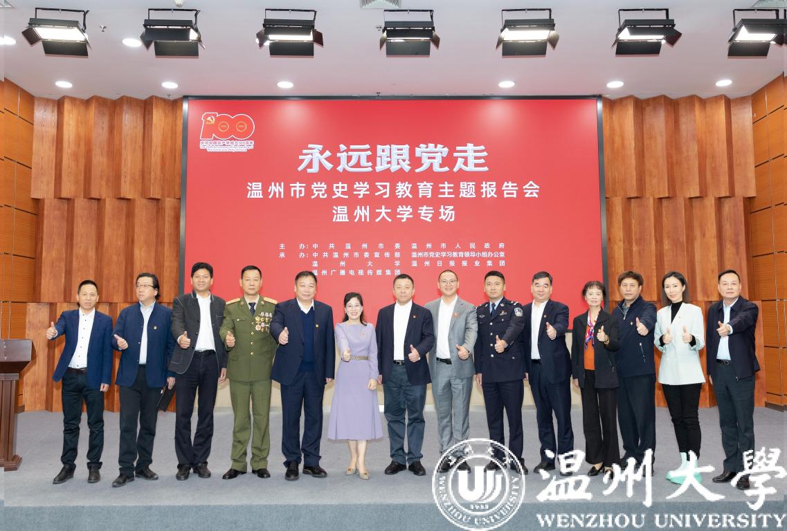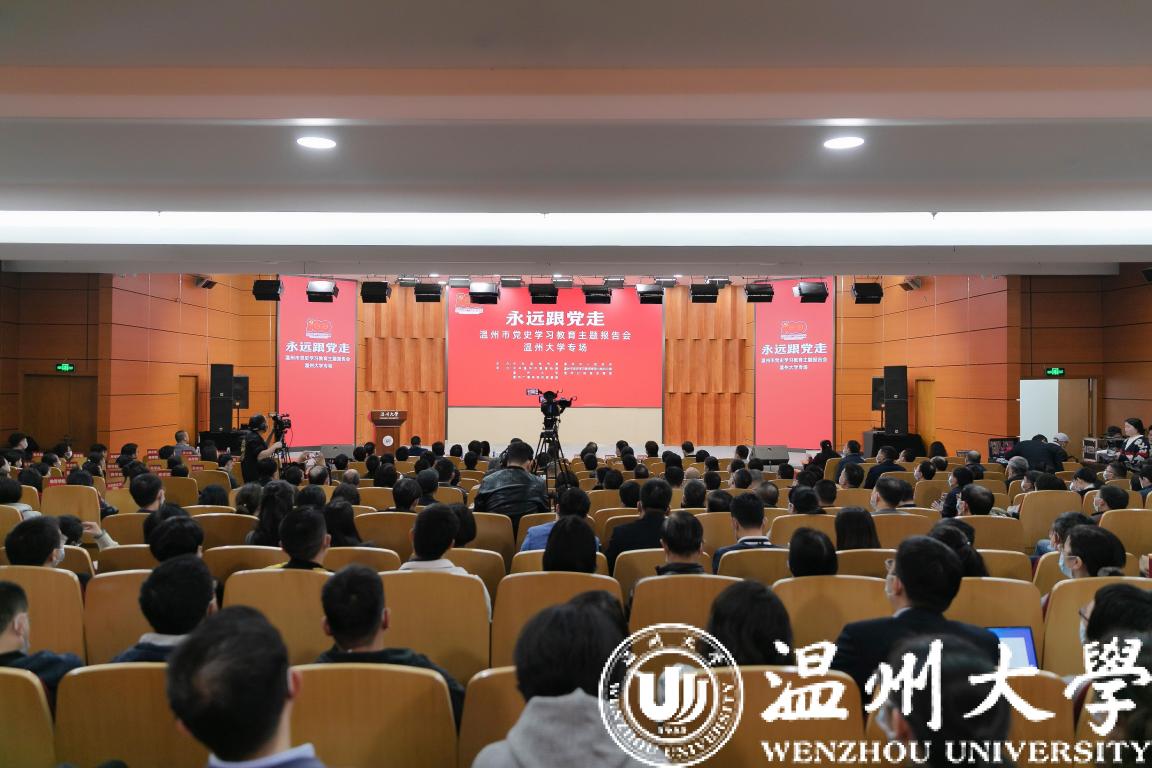 本次报告会由中共温州市委、温州市人民政府主办,中共温州市委宣传部、温州市党史学习教育领导小组办公室、温州日报报业集团、温州广播电视传媒集团和sunbet申愽共同承办。报告团“小切口、小故事”式的动情讲述,让整场报告会感人肺腑、催人奋进,激励着广大师生党员干部向榜样学习、向楷模致敬,从中汲取初心的力量、信念的力量、奋斗的力量。本次sunbet申愽官网专场报告会还设置了现场直播和各学院分会场,线上线下收看人数达3.5万人次。