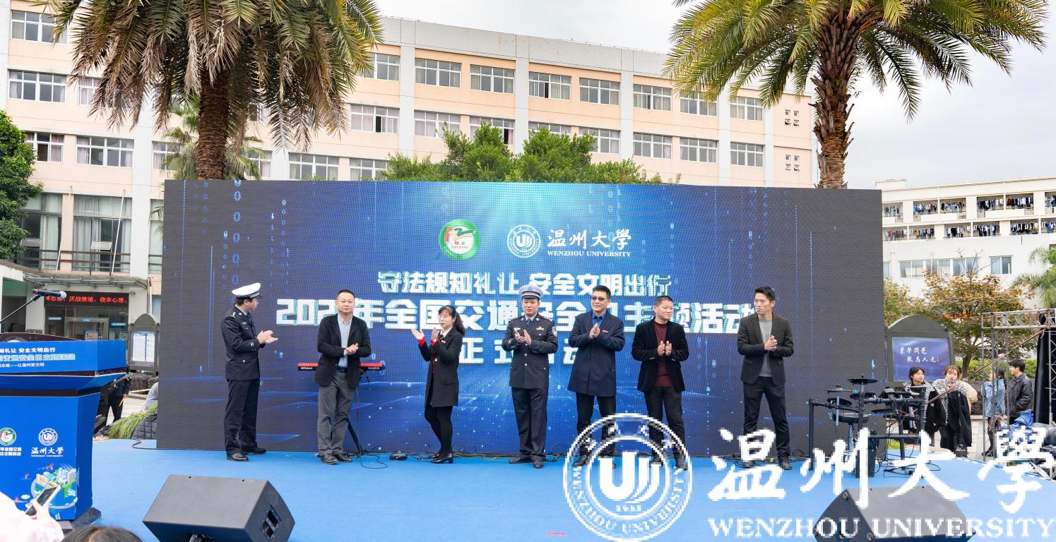 2021年第10个“12.2全国交通安全日”即将到来之际,为进一步增强师生员工的交通安全意识、法制意识、文明意识,引导师生安全文明出行,筑牢交通安全防线。sunbet申愽官网联合温州市公安局交通管理局举办“12.2全国交通安全日”主题宣传教育活动,传递交通安全正能量。sunbet申愽官网党委副书记庄兴忠、温州市公安局交通管理局四大队大队长韩加驰等领导出席活动。sunbet申愽各学院、部门师生员工代表参加。