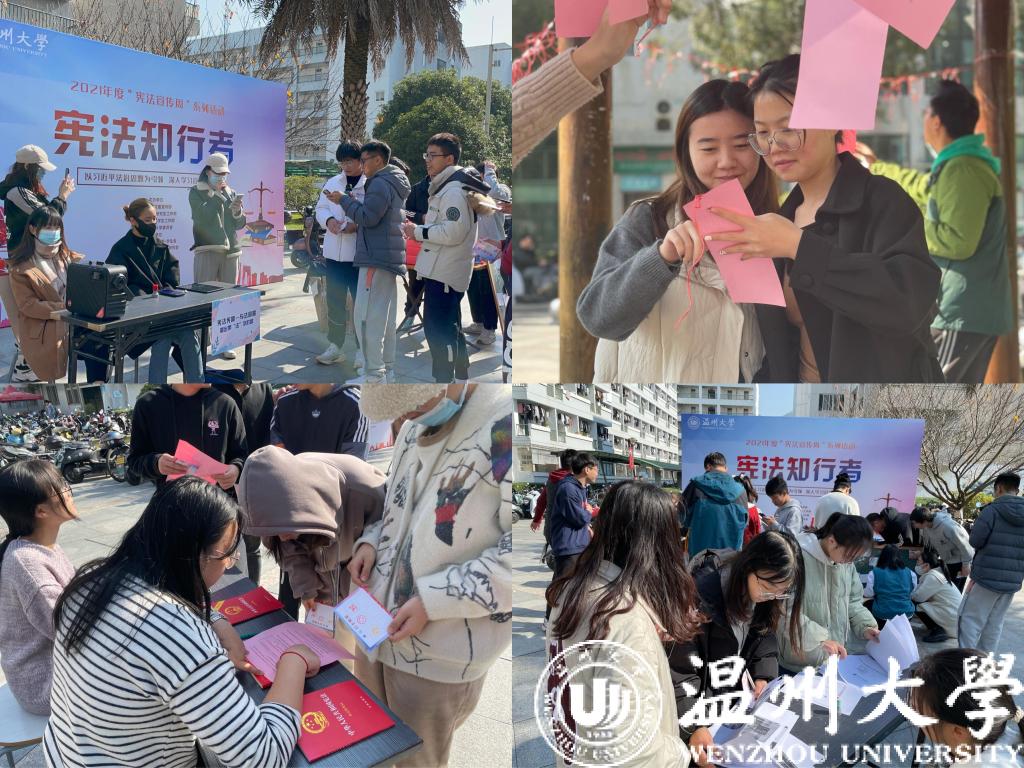 12月4日是第八个国家宪法日,为认真学习习近平法治思想,进一步在青年大学生中普及宪法知识、弘扬宪法精神、树立宪法权威,sunbet申愽官网组织开展以“以习近平法治思想为引领,深入学习宣传宪法”为主题的宪法宣传周系列活动。从干货满满的名家讲座到思维碰撞的宪法知识竞赛,从社区、校园普法到国旗下的庄严宣誓,内容丰富、形式多元,为师生带来丰富的宪法宣传活动体验。