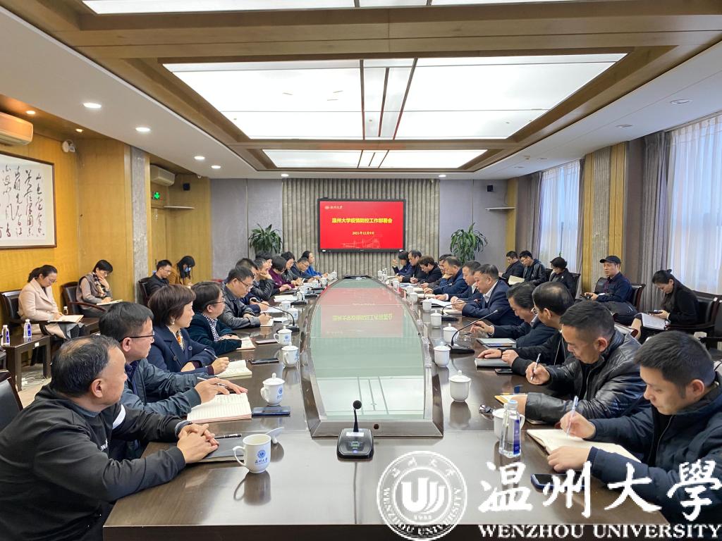 校党委书记谢树华作工作部署。他指出,目前温州市疫情防控已经从平时模式转向战时模式,sunbet申愽官网也必须进入战斗状态,全面紧起来、动起来、严起来,坚决筑牢疫情防控的铜墙铁壁。谢树华强调,当前学校疫情防控工作要做到“三个严”。一是严阵以待。面对严峻形势,要坚决克服麻痹思想;面对常态防控,要坚决克服厌战情绪;面对工作盲区,要坚决克服侥幸心理。二是严防严控。重点做好6个方面的严防严控工作。要做好人员排查和管控落实,密切关注把握好动态防控要求,精确掌握师生行程轨迹和健康状况,严格落实重点人员分类健康管控要求。要做好门岗管理和出行审批,严把校门入口关,严把校外人员入校审批关、严把出行审批关。近期在省内疫情风险未明之前,原则上教师“非必要不离温”,学生“非必要不离校”。要做好教学安排和活动管理,科学有序安排日常教学活动,严格落实省市关于聚集性活动的管理要求。要做好疫苗接种和核酸检测,层层落实做好定期核酸抽测工作,按“应接尽接”的原则,有序推进疫苗加强针接种工作。要做好应急响应和后勤保障,加强防控机制和应急预案的实战演练,切实提高应急处置能力。要做好政策宣传和舆论引导,引导师生不信谣不传谣更不能造谣,及时做好信息告知,提醒师生做好个人防护。三是严明纪律。防控工作最关键就是严抓责任落实,严明防控纪律,责任要一抓到底,执行要一落到底,督查要一严到底。谢树华最后强调,希望全校上下严字当头,众志成城,携手打赢新形势下的疫情防控阻击战。