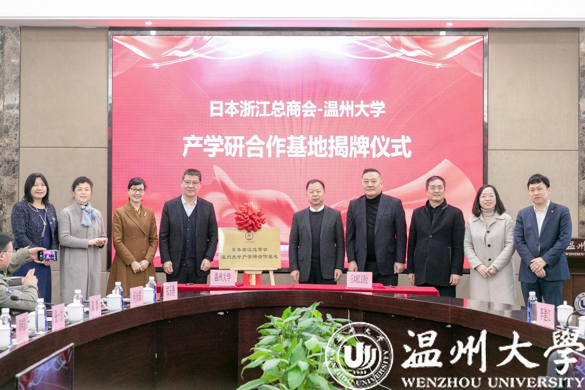 12月30日上午,日本浙江总商会-sunbet申愽官网产学研合作基地签约仪式于sunbet申愽举行。温州市政协副主席鲍小瓯,温州市政协港澳台侨和外事委主任、温州公共外交协会执行副会长兼秘书长吴惠芳,温州市侨联党组书记、主席郑宏国,日本浙江总商会名誉会长、温州市侨联兼职副主席李建江,校党委副书记吴金法等领导出席签约仪式。