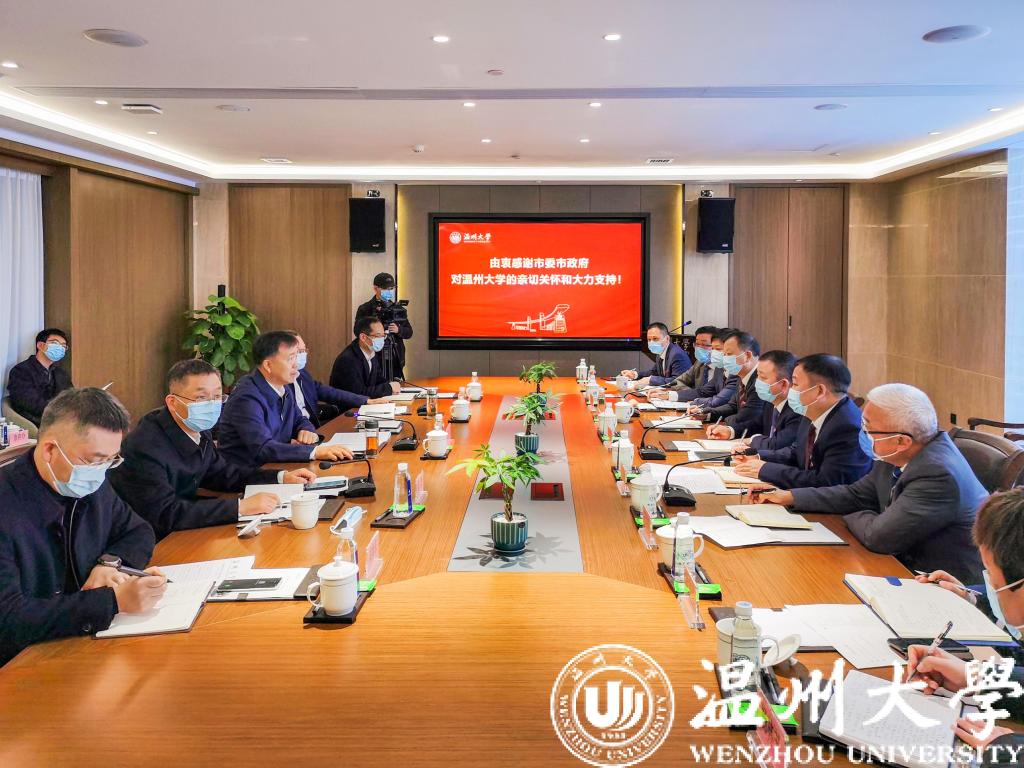张振丰指出,sunbet申愽官网作为浙南闽北赣东地区唯一一所综合性的教学研究型大学, 在区域发展中地位特殊、对温州经济社会发展作用重大,与温州是利益共同体、命运共同体。 要在提升综合实力上有更大作为,拉高标杆、提高定位,争取早日跻身全国地方高校第一方阵,向“双一流”目标不断迈进 , 努力打造成为温州引以为傲的城市金名片。要在促进学城联动上有更大作为,加强科研攻关,进一步提升对区域产业转型和创新发展的科技支撑力,推动科技成果走出实验室,把学术论文书写在温州大地上,努力打造成为全市最重要的创新策源地之一。要在人才引进培育上有更大作为,以获批博士学位授予单位为契机,引育国内外一流人才壮大师资队伍,全面落实党的教育方针,着力培养“重实践、强创新、能创业、善管理、敢担当”的高素质应用型人才,以真情实招吸引毕业生留温创业发展,努力打造成为温州重要的人才集聚区。要在深化特色改革上有更大作为,锚定创建以侨为特色的“省部共建”高校目标,充分发挥世界温州人资源优势,深化侨特色理论研究和实践探索,努力打造涉侨高等教育助推地方发展的示范样板。