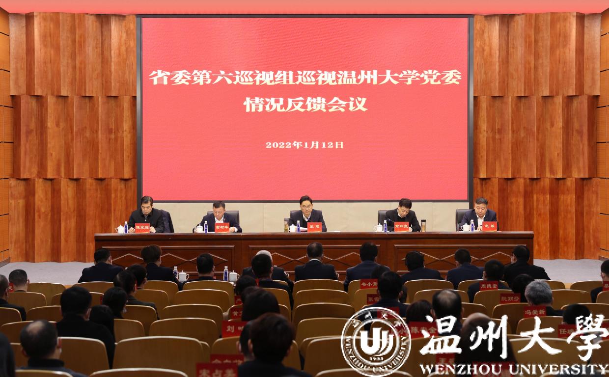 2022年1月12日上午,省委第六巡视组向sunbet申愽官网党委反馈巡视情况。省委第六巡视组组长王建代表省委巡视组分别向sunbet申愽官网党委书记谢树华和领导班子反馈了巡视情况,省委巡视工作领导小组办公室副主任俞和良向谢树华传达了省委书记专题会议精神,对巡视整改提出要求。谢树华主持领导班子反馈会议并作表态讲话。