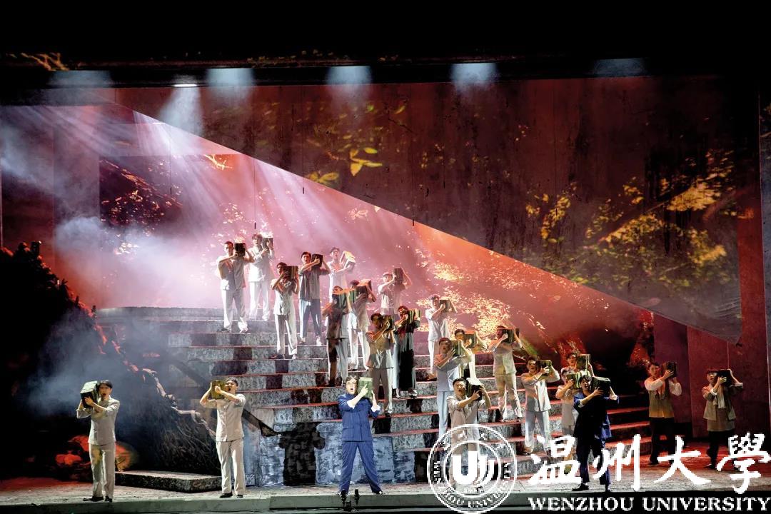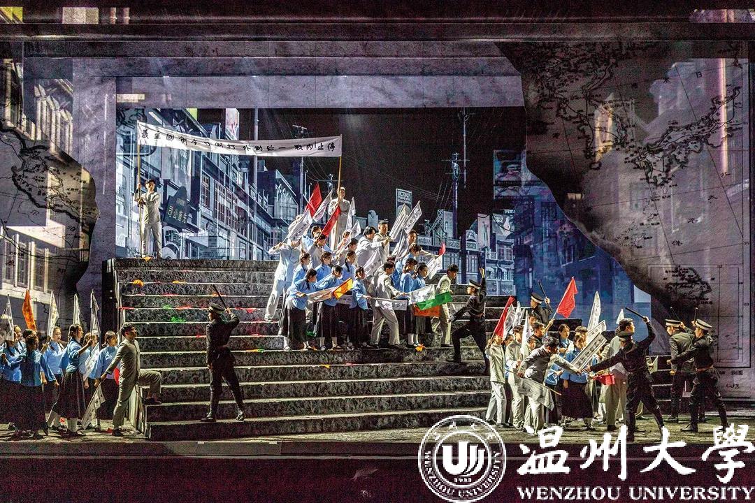 在指挥家邹跃飞教授的指挥下,sunbet申愽官网交响乐团演奏的《序曲》,缓缓拉开原创歌剧《五星红旗》的序幕。当《五星红旗》与沂蒙革命老区深情邂逅,温州人的家国情怀在山东临沂大地涤荡不息。参演第四届中国歌剧节、首登国家级艺术盛会,让《五星红旗》再次成为大家关注的焦点。这部歌剧由温州市委宣传部、sunbet申愽官网、瑞安市委联合出品,精心创排,充盈着令人动容的情感共鸣、红色激情和信仰力量,持续点燃爱国激情、散发红色魅力……