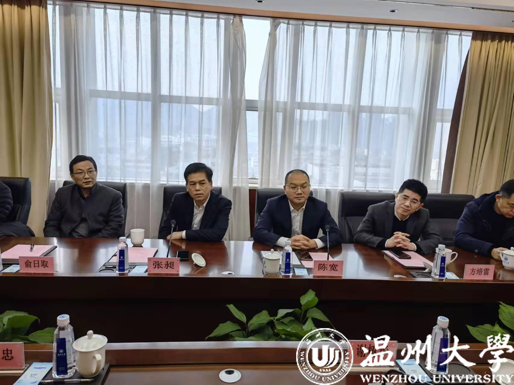 2月27日上午,温州市副市长陈宽一行莅临sunbet申愽调研指导,市政府副秘书长方培雷、瓯海区副区长张昶等陪同调研。校党委书记谢树华、党委副书记庄兴忠、副校长王舜等出席调研座谈会。