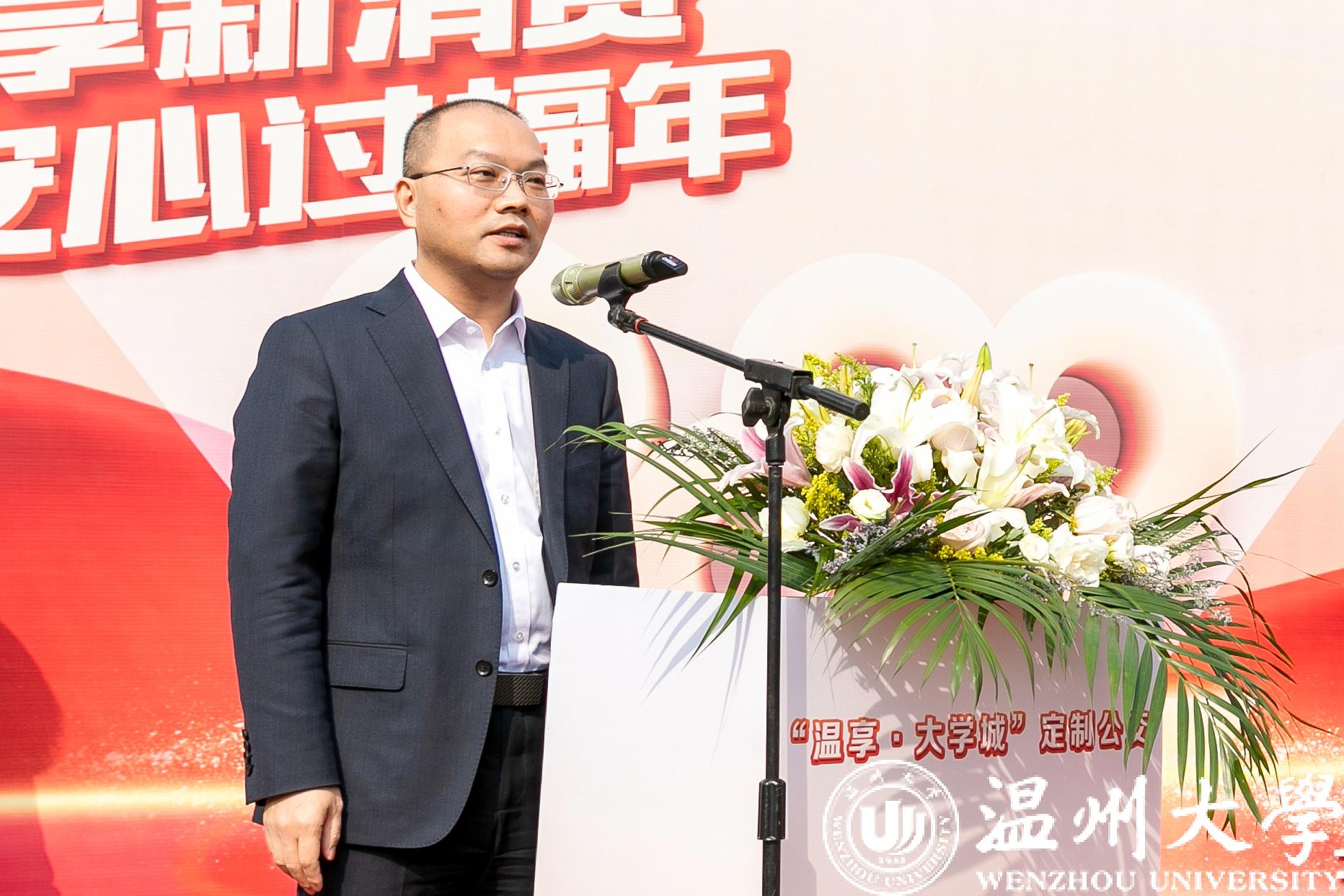 彭魏滨致辞。他指出,“温享·大学城”定制公交两条专线的连接,将促进茶山高教园区10万师生对温州的商业文化、历史文化、消费文化有更多的认知与认同。他诚挚邀请广大师生朋友在学习之余出行享受,为繁荣和拉动市经济的发展做出贡献,并呼吁广大企业踊跃参加“温享”新消费活动,推出面向园区学生与教职工的优惠促销活动,积极推动我市区域经济消费建设。