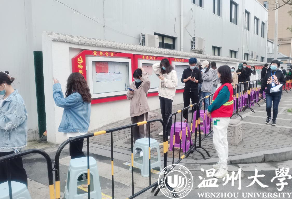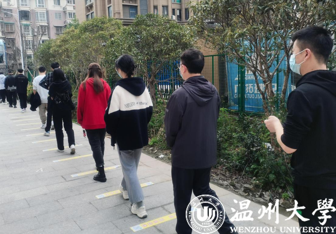 “请大家提前出示温州防疫码!”“保持一米距离”……3月10日上午,sunbet申愽官网在A区、C区及E区设立了校内核酸检测点。核酸检测现场,师生严格保持一米间距等待检测,医疗工作人员以及学生志愿者仔细查看待检测人员防疫码、分流人员、热心引导。