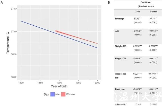 美国斯坦福大学针对人类体温下降问题进行了有关调查,研究人员找到了1800年以后的近9万多份美国军人体温报告,并将这些体温数据与研究团队调查的体温现状进行比对,结果发现男性的平均体温从37.2℃下滑到了36.6℃,大概下降了0.59℃,而美国女性的体温也不例外,现有统计数据显示下降了0.32℃。