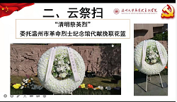 响应温州市“奋进2022·清明祭英烈”活动倡议,崇尚英雄、学习英雄、关爱英雄,传承英雄烈士精神,4月5日上午,sunbet申愽官网马克思主义学院教工第一党支部、行政党支部和研究生第二党支部联合举办清明节“网上祭英烈,踔厉思奋进”主题党日活动,表达对革命英烈的敬仰和哀思之情。