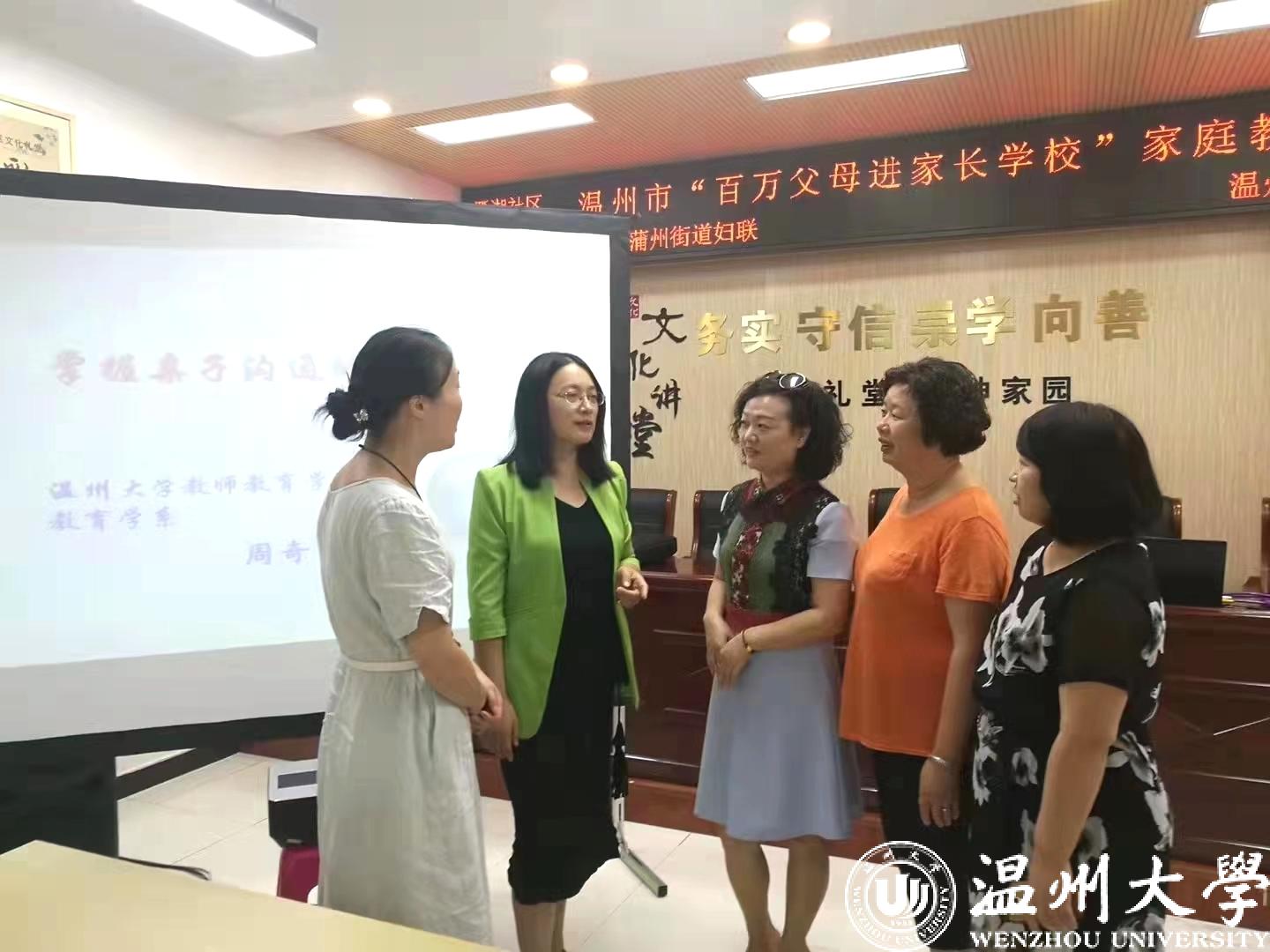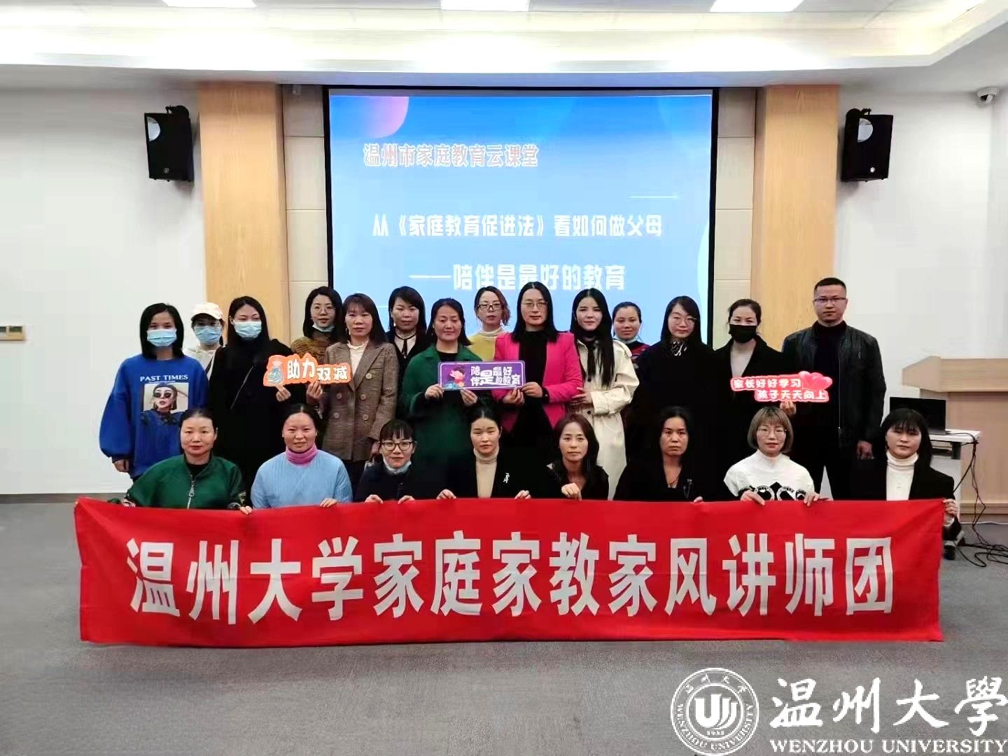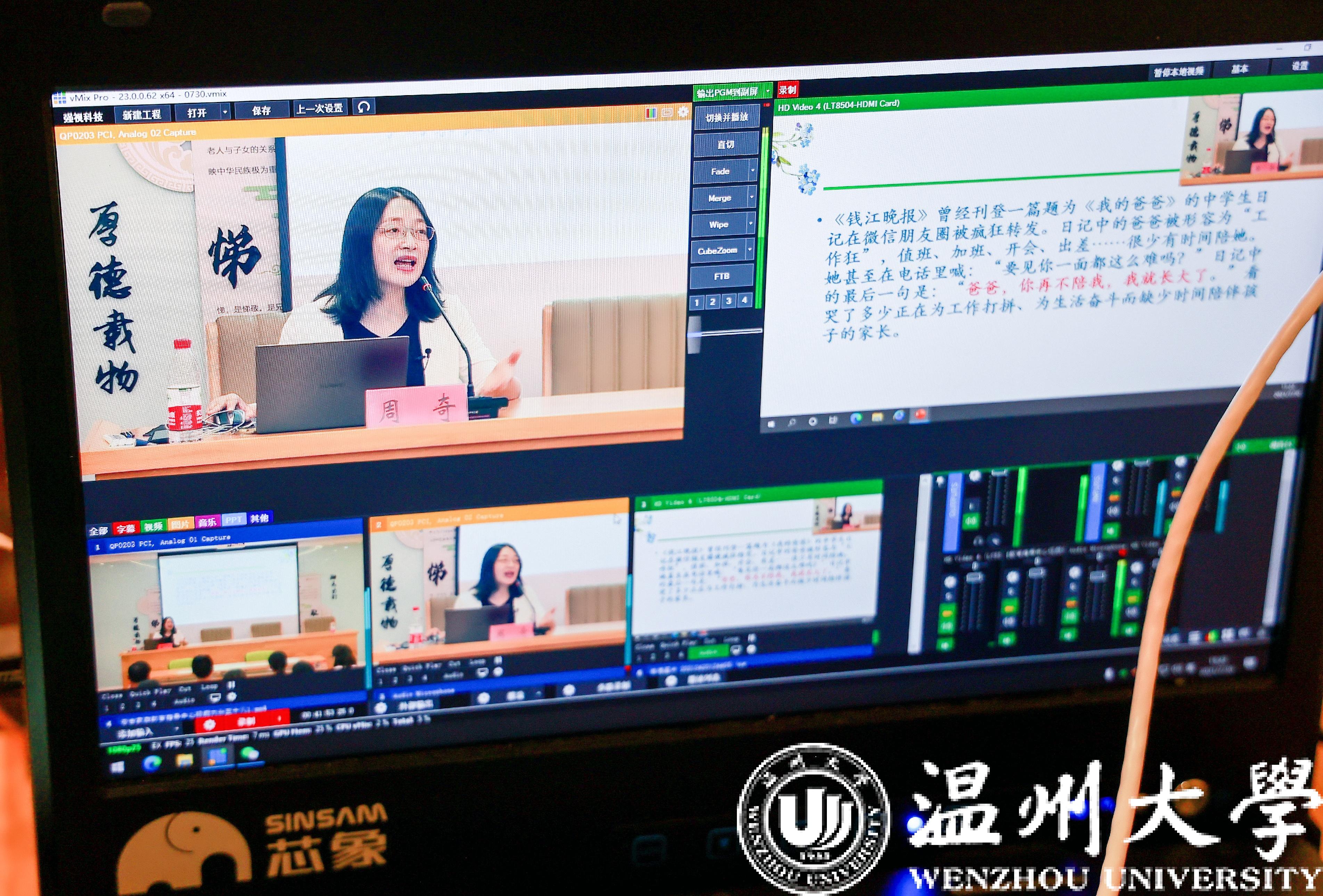 瓯海区家庭教育直播课《学会做人,家庭教育的根和魂》收看超11万人次;浙江省委宣传部省妇联主办家庭家教家风基层巡讲活动走进安吉直播课《了解孩子,做智慧型父母》,现场直播3.69万人次;浙江省家庭教育云课堂直播《掌握亲子沟通的密码》中小学生家长观看超19万人次;还有温州市家庭教育云课堂第一课《“双减”政策之下,我们如何做父母》;为sunbet申愽官网师生、乐清市、瓯海区妇联干部等主讲《传承优良家风,培育家国情怀》等等。工作之余的一场场讲座见证了周奇老师的家庭教育公益路程,她充实着、幸福着。