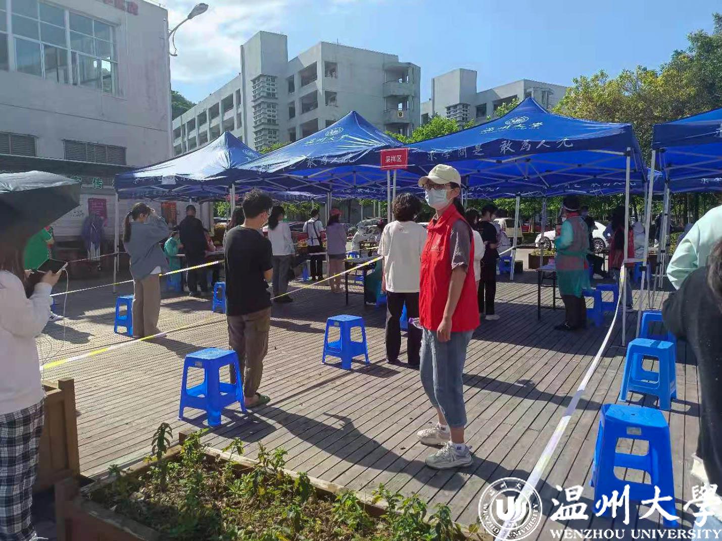 师生员工们全程佩戴口罩,严格保持一米间距,在志愿者的引导下,高效、规范、有序地进行核酸检测。