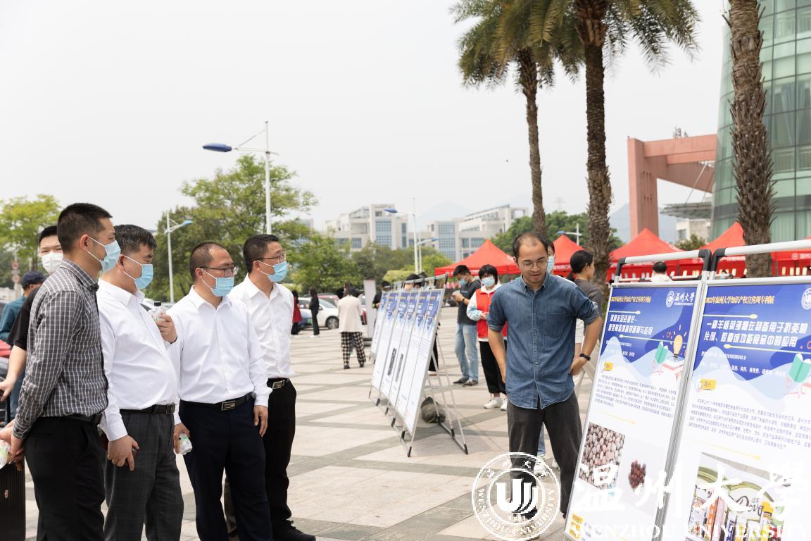 活动现场人头攒动,各学院师生陆续前来观展,校领导赵敏、徐和昆、杨林书来到活动现场,并参与了保护知识产权倡议签名,听取了专利展介绍。