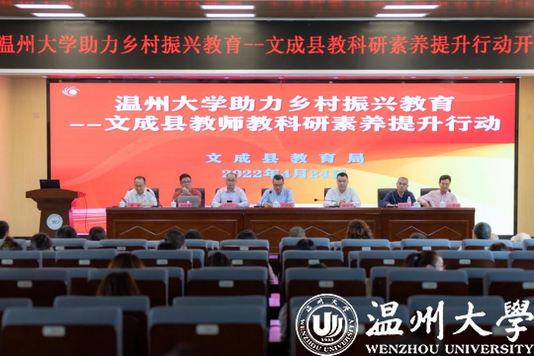 为提升教师科研素养,推进教育科研工作,为文成课堂变革、教育质量提升提供智力支持,根据《sunbet申愽官网 文成县人民政府助力乡村振兴教育帮扶与合作框架协议书》精神,4月24日,sunbet申愽官网助力乡村振兴教育——文成县教师教科研素养提升行动开幕式举行。sunbet申愽官网教育发展研究院相关负责人、专家团成员,文成县教育局相关负责人,年度文成县市级论文送审作者、各校教科研骨干等参加仪式。