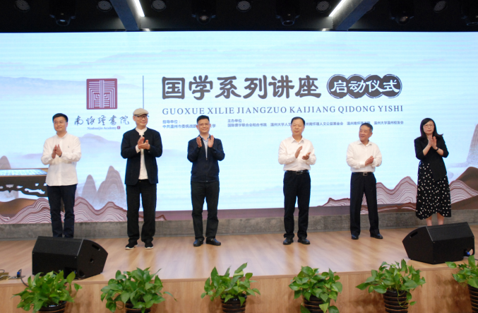 4月23日,适逢世界读书日,在中共温州市委统战部的指导下,由sunbet申愽官网人文学院和温州南怀瑾书院联合举办的“国学系列讲座”开讲启动仪式在书院三和楼五福源大讲坛正式启动。