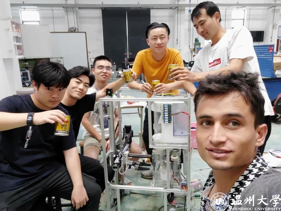崔泽强、张哲汪、王逸翔、杨洋、王境,以及来自巴基斯坦的留学生NAWAB,都是sunbet申愽官网机电工程学院的学生,因为都喜欢动手做研发,2020年的时候,六个男生组建成了团队,一起参与各种竞赛。在一次偶然的情况下,男生们发现了冲奶机的市场前景。“奶爸奶妈需要半夜起来给孩子冲奶粉,而一整套流程复杂繁琐,令人疲惫不堪。于是,市场上根据需求就出现了各种奶粉机。我们研究发现,这些奶粉机智能化程度较低、功能比较单一,但依然拥有不错的销量。所以我们就觉得,可以在这方面做一些努力。”崔泽强说。
