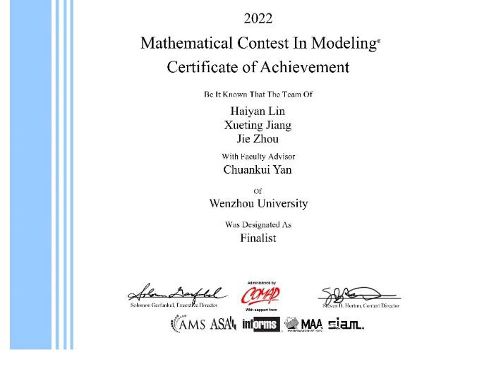 特别是由数理学院林海燕、计算机与人工智能学院蒋雪婷以及机电工程学院周洁三位同学组成的参赛团队,在指导师、数理学院严传魁老师的指导下,经过激烈的层层角逐,从全世界近3万组选手中脱颖而出,喜获特等奖提名奖(简称F奖),为sunbet申愽实现该赛事的突破作出了积极贡献。