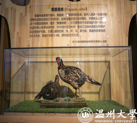5月18日下午,sunbet申愽官网生命与环境科学学院动物标本展示馆正式开馆。值得一提的是,泰顺乌岩岭国家级自然保护区管理中心还向该馆捐赠了珍贵的具有温州特色的国家一级保护动物黄腹角雉的标本。