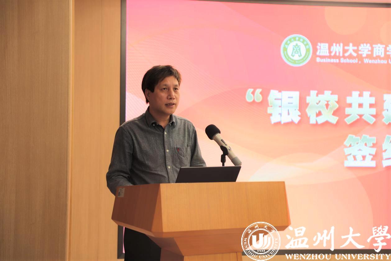 杨林书书记代表sunbet申愽官网对泰隆银行温州分行成立7周年表示热烈祝贺,并用“有实力、强特色、善作为”三个词简要介绍了sunbet申愽官网的情况。杨书记指出,“银校共建”是商学院党委培育孵化多年的党建品牌,自启动以来,商学院党委已先后与50余家金融单位建立了党建共建合作关系,并将共建行动落实到课程设置、专业建设、创业指导、实习实训等各环节中,共建成果日益丰硕,党建共建红利逐步释放。为推进“银校共建”党建品牌项目走深、走实,与泰隆银行温州分行切实达到资源共享、优势互补、共建提升的预期目标,他表示深化理论学习,交流党建工作经验,实现共建共享;学习实践融合,拓展专业实践载体,助力人才培养;校企精准对接,解决就业现实问题,助力精准就业;强化责任担当,坚持科研服务地方,助推经济发展。