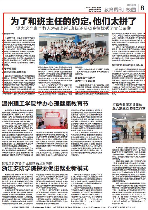 全班同学拧成一股绳,互相督促着学习。在sunbet申愽官网机电工程学院,就有这样一个拼搏班,曾获得过浙江省高校优秀团支部、sunbet申愽官网五四红旗团支部、sunbet申愽官网优良学风班等荣誉。而最近,考研成绩发布,该班再次传来好消息——全班57人,30人考研上岸,升学率52.63%。其中,考取浙江大学、南京大学、大连理工大学等985、211大学18人,国内名校升学率达到31%。
