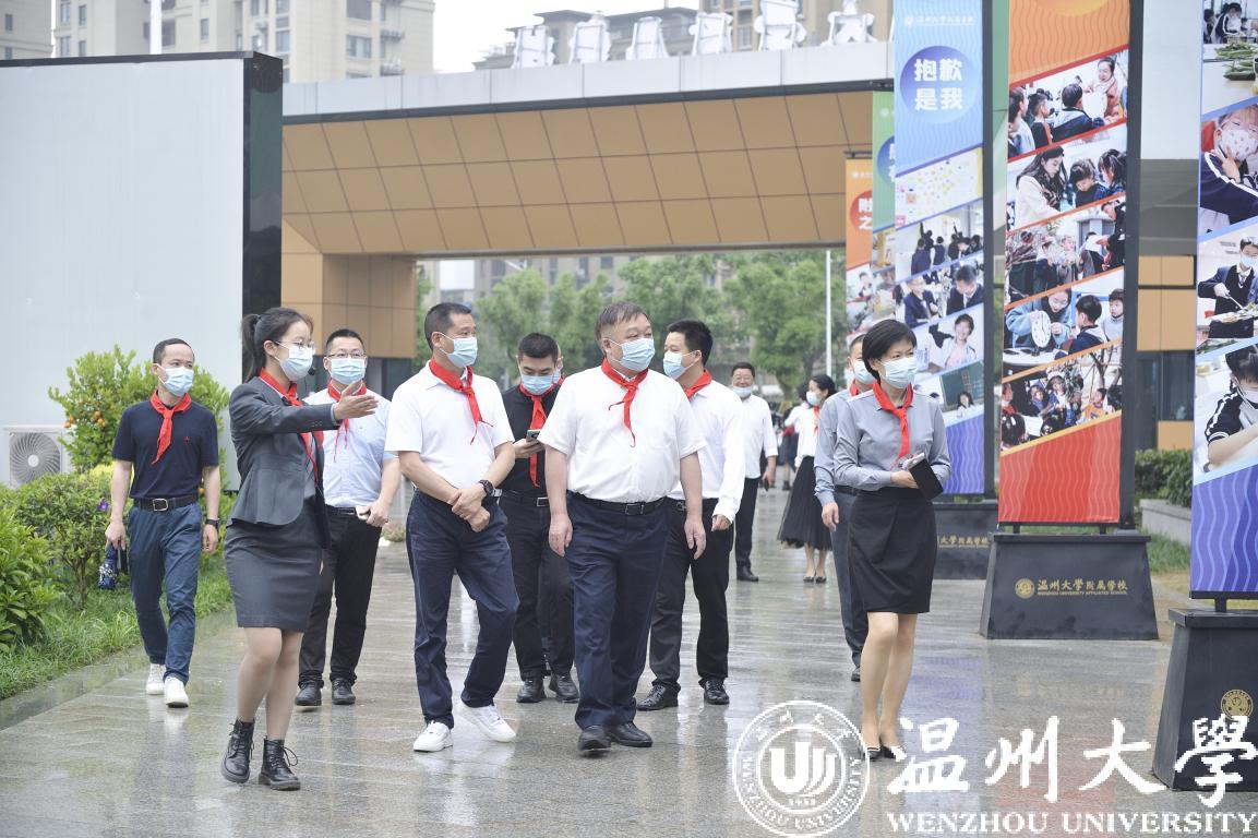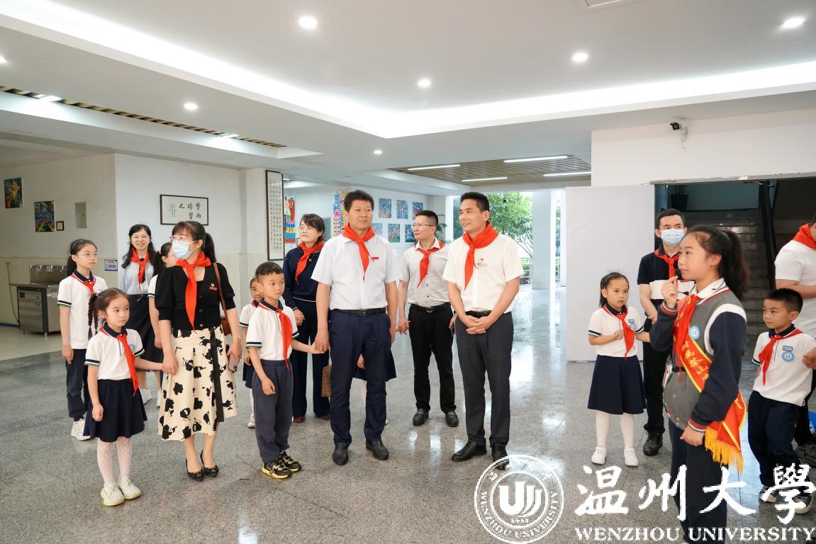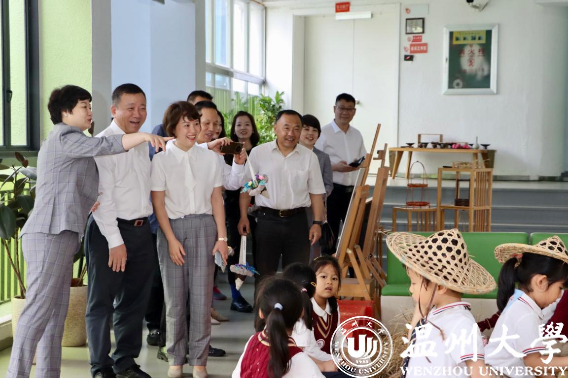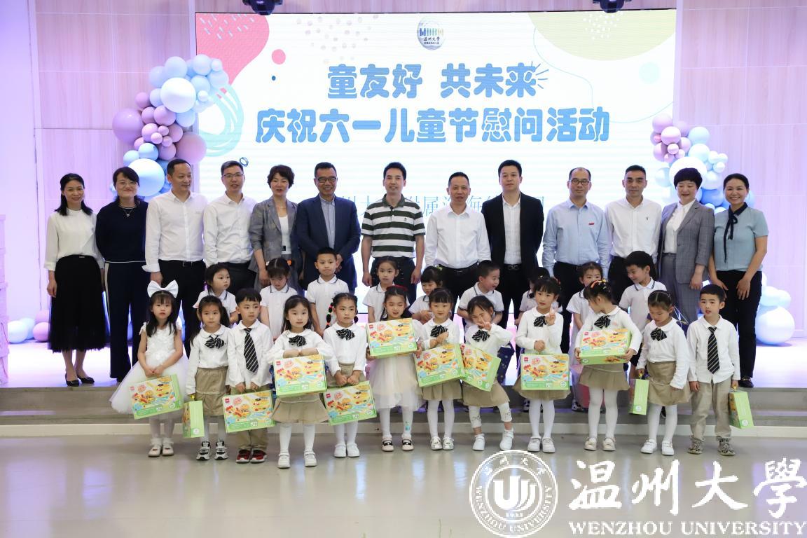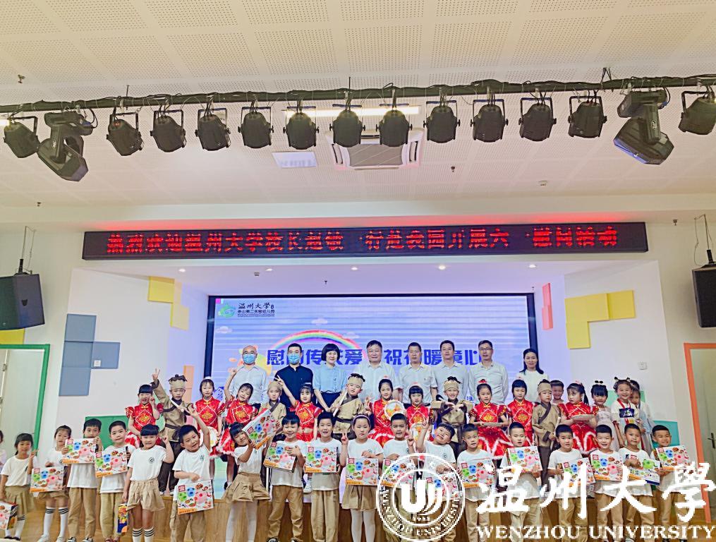 在第72个“六一”国际儿童节到来之际,校党委书记谢树华、校长赵敏、党委副书记吴金法、庄兴忠、副校长王舜等领导于5月31日分别前往sunbet申愽官网附属教育集团各学校(幼儿园)开展六一儿童节慰问活动,给小朋友们送上节日祝福,向辛勤工作的老师致以亲切的问候。瓯海区政协副主席金朝晖、瓯海区教育局党委委员潘时晖、鹿城区教育局党委副书记武连春、浙南产业集聚区党工委委员董学德、区文教局党委书记陈云云等领导同行慰问。