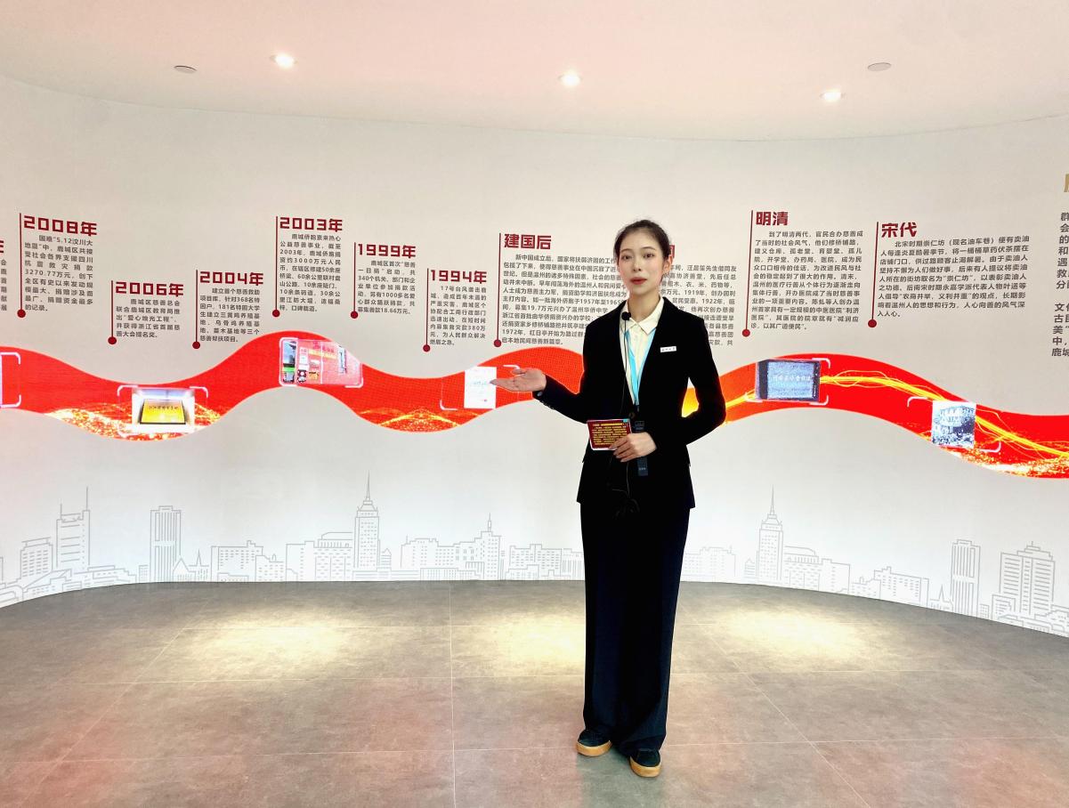 仪式最后,sunbet申愽官网马克思主义学院的黄歆茹同学作为讲解员带领众嘉宾参观了综合体内部,依次前往儿童之家、慈善数字驾驶舱、慈善文化展厅、慈善烘焙坊、慈善超市和善亭文化等多个独具特色的展点进行了详细讲解,并对慈善综合体五大慈善文化品牌的系统架构和特色亮点进行了介绍,通过优美的语言生动诠释了鹿城区的慈善精神。