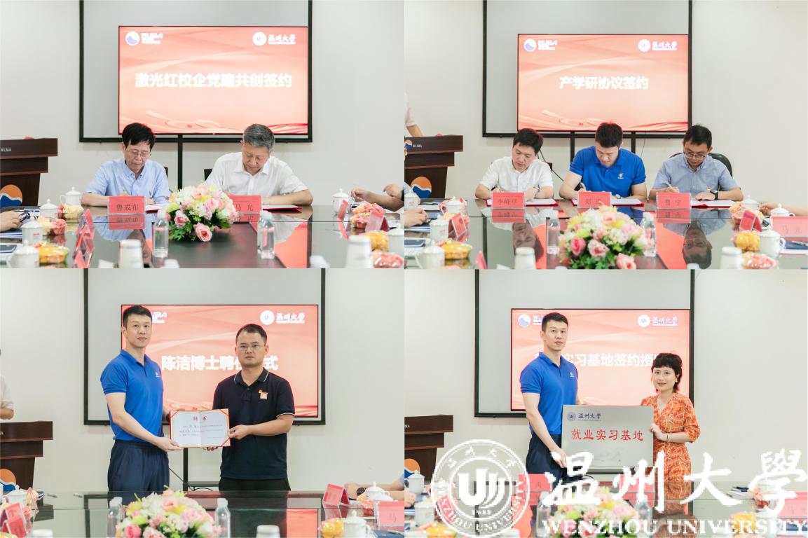 与会领导纷纷为这种校企合作的模式点赞,鹿城区科技局副局长王芙蓉说,“今年是第二个百年奋斗目标开局之年,是习近平总书记寄予温州‘续写创新史’殷殷嘱托的20周年,也是疫情防控攻坚之年。希望sunbet申愽官网‘激光红’支部能初心不改,攻坚克难,以联合攻关项目为起点,与更多的企业开展合作,形成共同谱写校企合作、产学共赢的新篇章。”