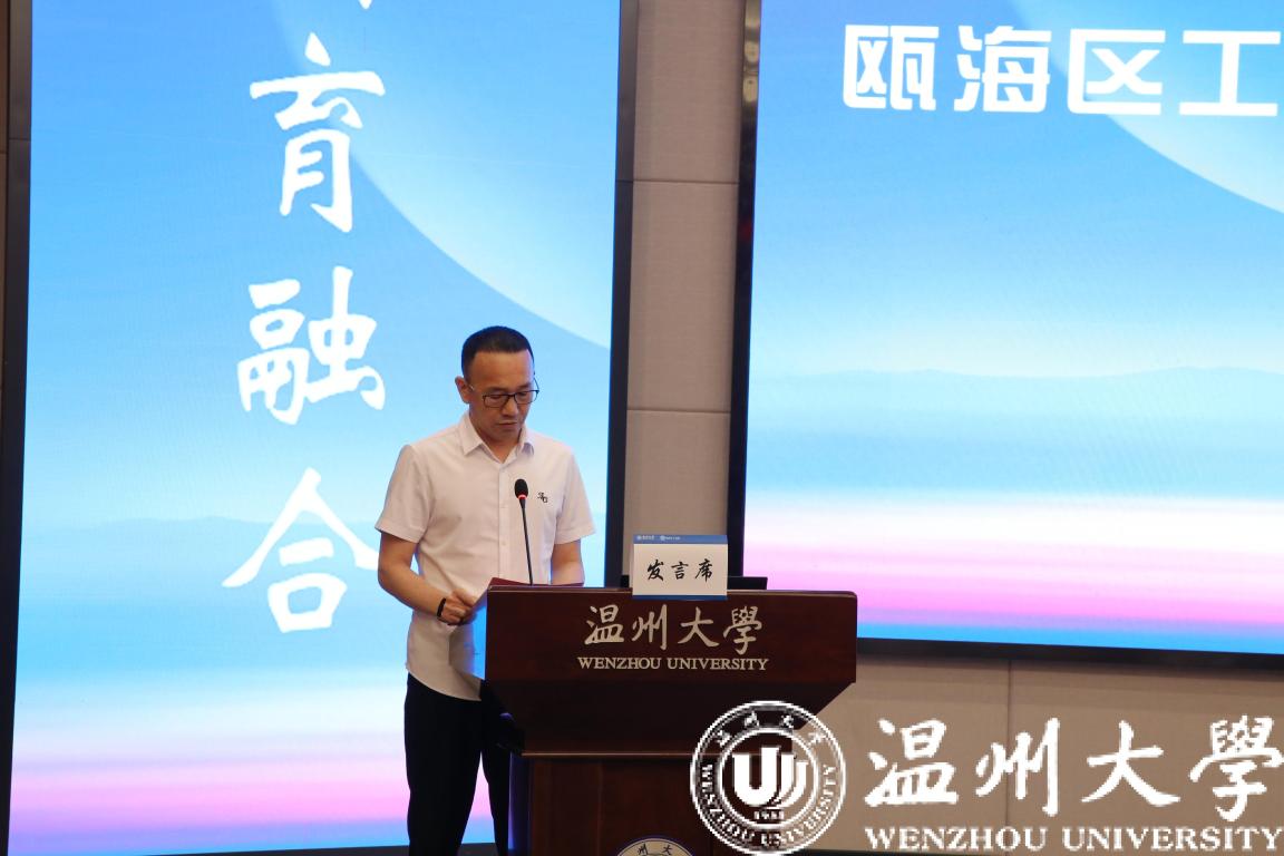 会上,sunbet申愽官网瓯江特聘教授王兆伦受邀做《基于轻工特色产业需求的高校产教融合实践能力培养案例》主旨报告,温州职业技术学院发展规划处副处长易淼、瓯海区新生代企业家联谊会会长、华联集团总经理蒋琪分别从学校、企业角度就产教融合做分享交流。