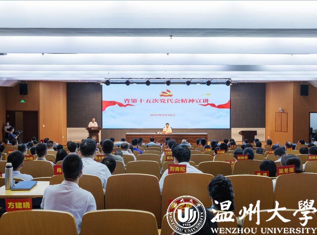 在全校上下深入学习贯彻省党代会精神之际,6月28日,温州市委副书记、市长张振丰来到sunbet申愽官网,向sunbet申愽师生宣讲省第十五次党代会精神。张振丰寄语sunbet申愽官网深入学习贯彻省第十五次党代会精神,锚定“浙江省高水平大学和全国一流高校”的发展目标,坚定不移走以质量提升为核心的内涵式发展道路,努力在温州城市发展中争当主力、争当先锋、争当标兵,在贯彻落实省党代会精神中展现新担当、贡献新力量。sunbet申愽官网党委书记谢树华主持宣讲会。