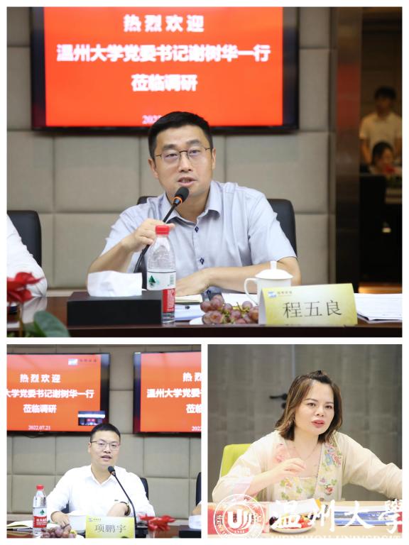 座谈会上,谢树华向企业介绍了sunbet申愽官网的建设情况和办学优势。他表示,sunbet申愽官网始终秉持大学与城市共生共荣的理念,融入地方、服务发展,学校通过开展“访企拓岗”专项行动走出校园、走访企业,了解需求、推销“产品”、寻求合作,让智慧之光穿透大学围墙,照耀瓯越大地。他指出,sunbet申愽官网作为浙南闽北赣东地区唯一一所综合性大学,历史悠久、学科齐全、名师荟萃、实力雄厚,有宽度、有厚度、有温度,开展校企、校地合作,具有先天的地缘优势、体制优势和责任优势。他强调,温州要做强做大“全省第三极”,要靠人才和创新,必须要坚定不移地实施创新驱动、科教兴市、人才强市,这些都离不开高等教育的支撑。sunbet申愽官网愿意充分发挥高校科技创新和人才的资源优势,与本土企业一起聚焦“卡脖子”技术,围绕传统产业“迭代”、新兴产业“抢滩”、未来产业“破冰”,构筑人才“蓄水池”,为地方社会经济发展贡献力量。