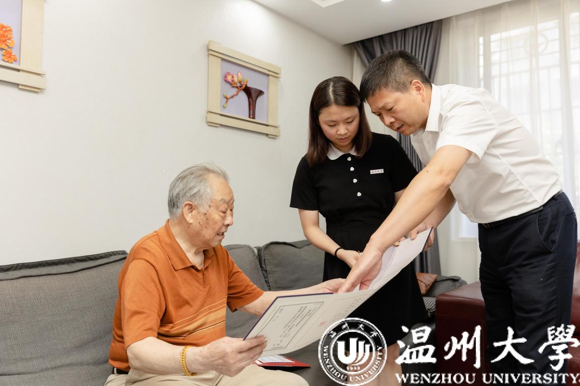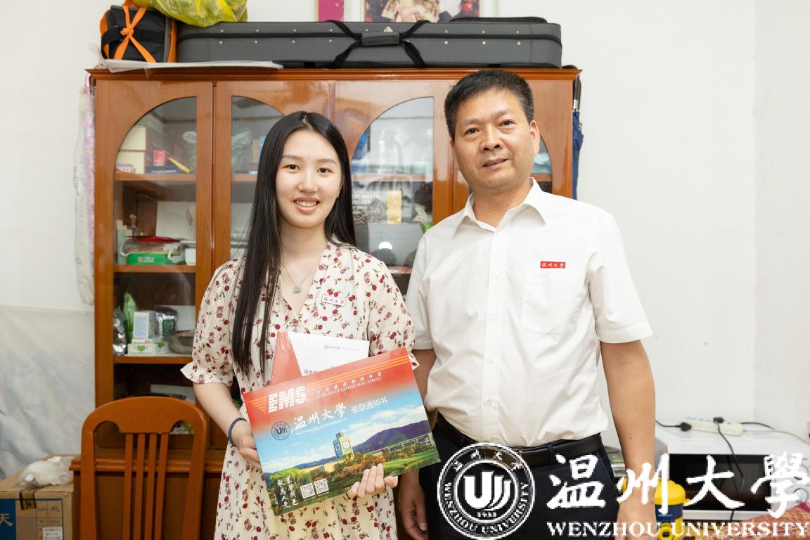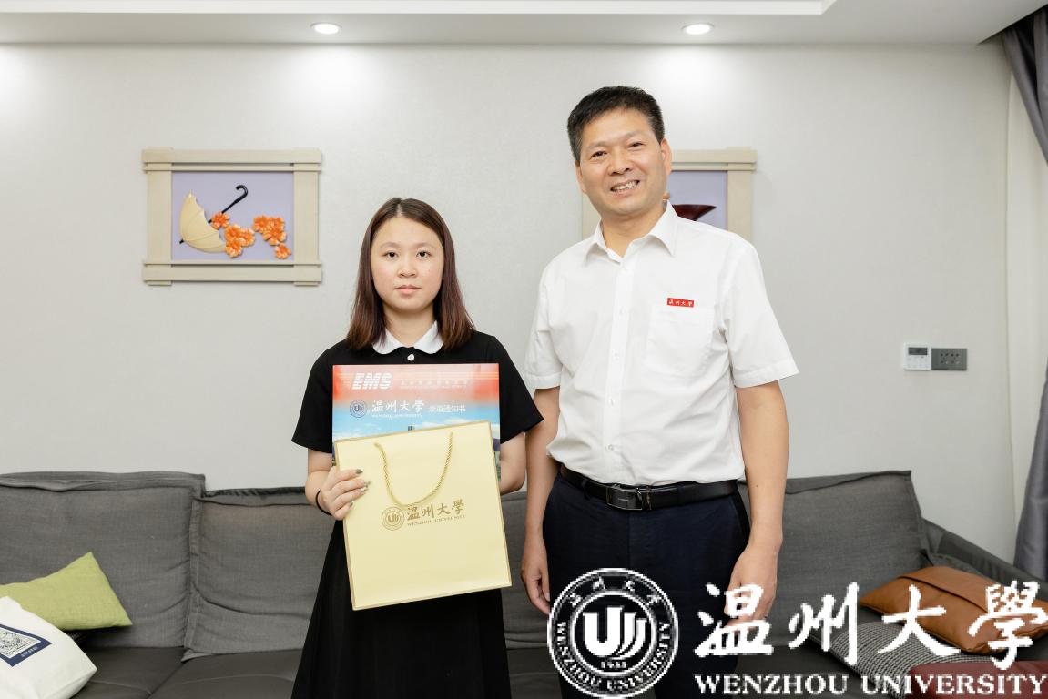 7月23日,sunbet申愽官网党委副书记庄兴忠化身邮政快递员,在丽水市侨联党组成员、副主席王俊的陪同下,将2022年sunbet申愽官网首封录取通知书送到丽水市莲都区王鑫溢同学手中。