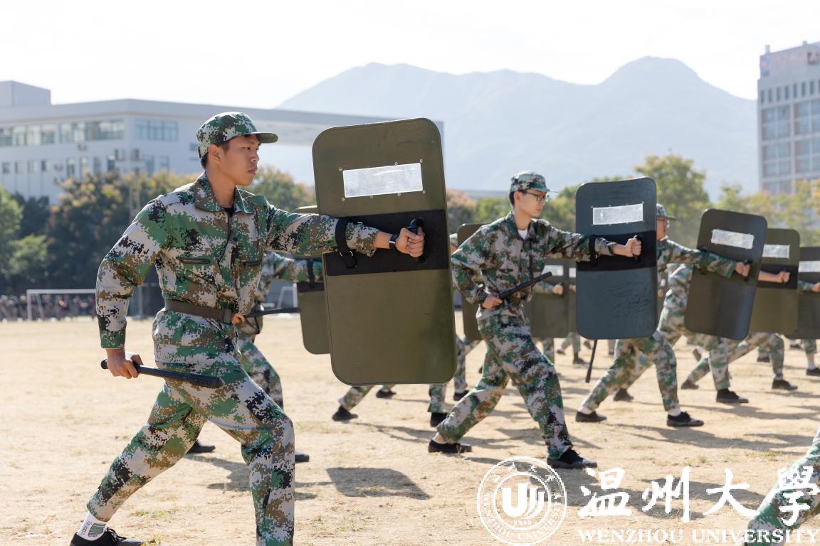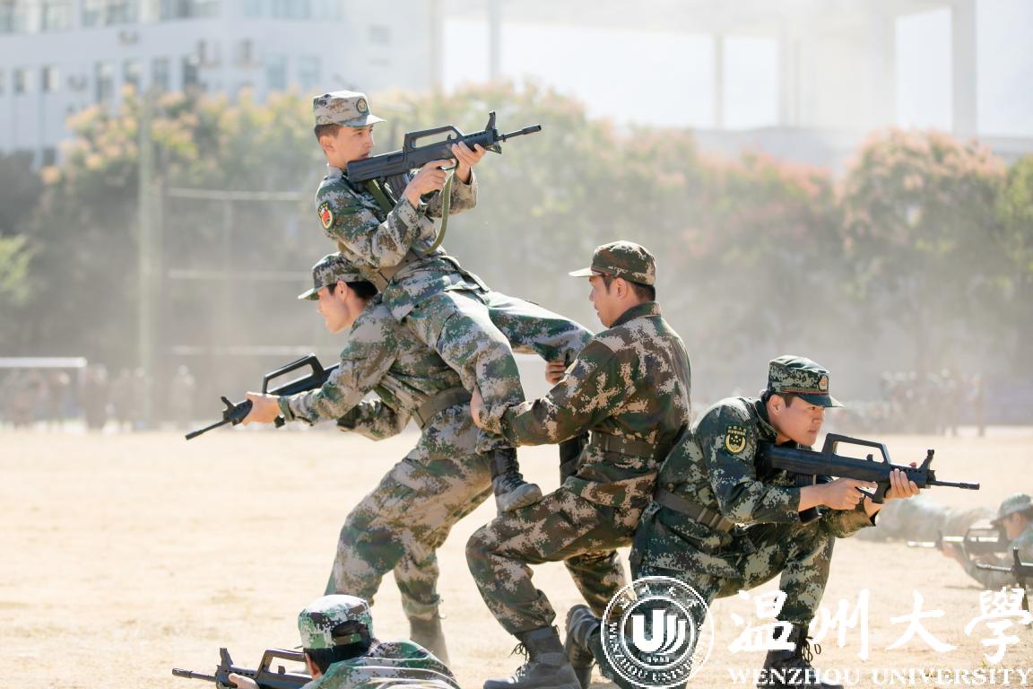 随后,分列式成果展示开始。各排学生军装笔挺、雄姿勃发、口号响亮、步伐铿锵、眼神坚毅,将求学问是、敢为人先的sunbet申愽精神展现的淋漓尽致。紧接着,受训学生们展示的刺杀操、捕俘拳、营救方案等表演更是将大会推向高潮,他们尖刃出鞘,长枪来袭,一招一式敏捷有力,朦胧烟雾中,一道道身影手持枪械,卧倒、匍匐、跪滑……整场表演气势磅礴、震撼人心。
