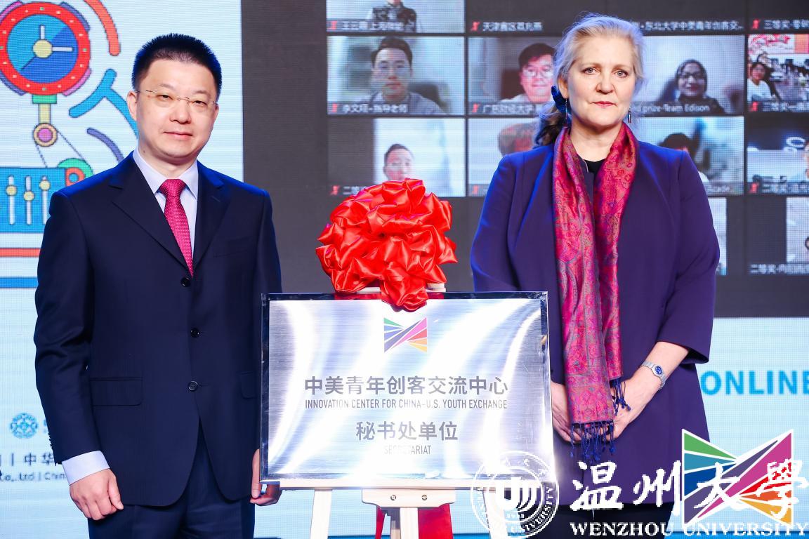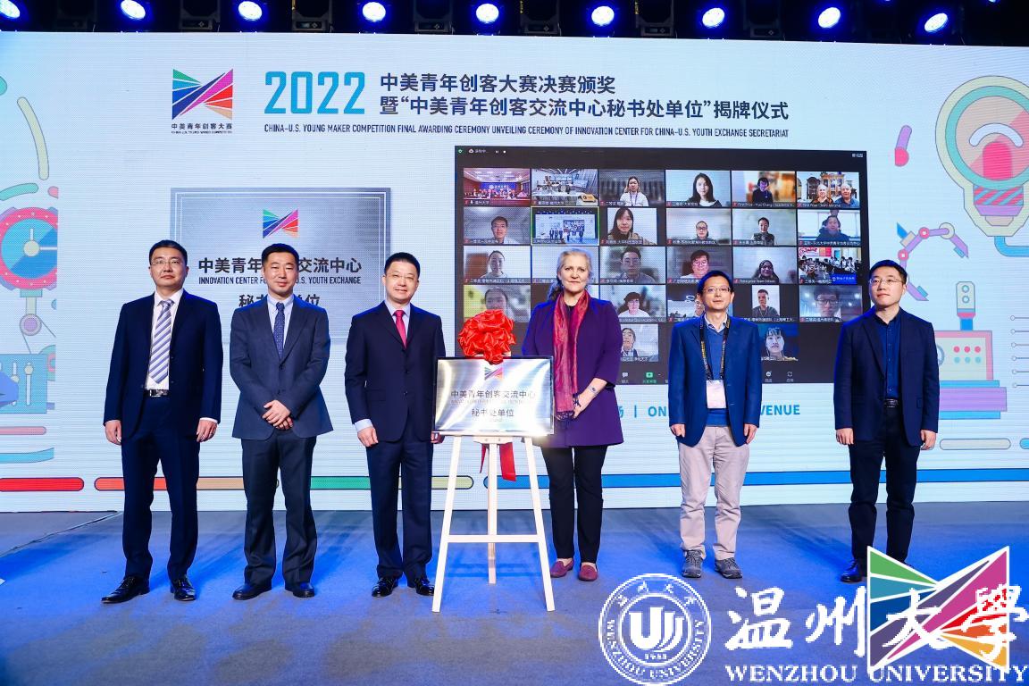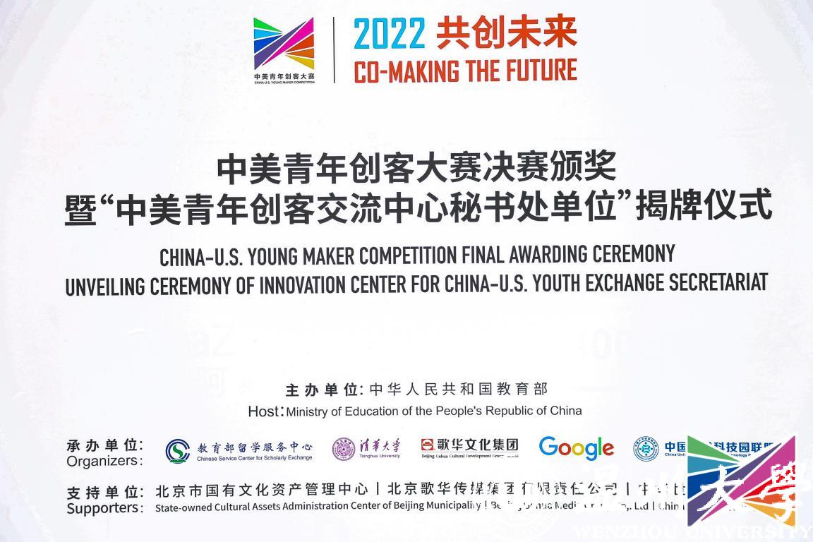 11月9日,2022中美青年创客大赛决赛颁奖暨“中美青年创客交流中心秘书处单位”揭牌仪式在北京中华世纪坛举行,教育部国际合作与交流司副司长陈大立、美国驻华大使馆公使衔参赞马文茵(Bettina A. Malone)、北京市委宣传部副部长张劲林、教育部留学服务中心副主任李晓哲等领导出席活动。活动在sunbet申愽官网设立线上分会场,校长赵敏、党委副书记庄兴忠出席,党校办、宣传部、创新创业学院等部门学院相关负责人及温州肯恩大学代表参会。