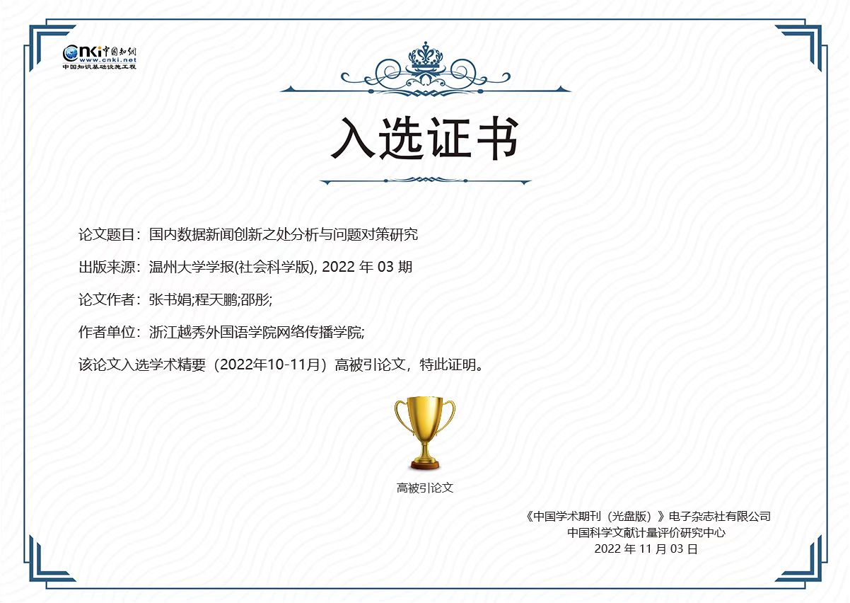 另,《sunbet申愽官网学报(自然科学版)》有29篇论文入选《学术精要数据库》,其中高被引文2篇次,高下载论文2篇次。