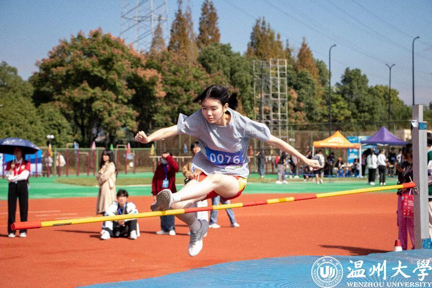 势如破竹般的助跑,找准时机,轻盈一跃,优美的身姿在空中定格,观众们的目光同时在此定格。