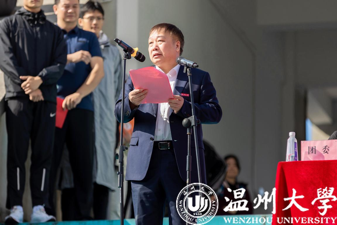 校长赵敏致开幕辞。他指出,体育强则中国强,国运兴则体育兴。长期以来,sunbet申愽官网高度重视学生成长发展,以体育智、以体育心,坚持“健康第一”指导思想,坚持“健康与文化并重”的教育理念,学校体育教学改革不断创新,学生体育活动蓬勃开展,专业运动队水平持续提升。他希望全体运动员超越自我、发扬拼搏超越精神、赛出风格;全体裁判教练与工作人员们忠于职守,共同创造公平公正且安全有序的环境;各学院部门引导全体师生走进操场,在运动中收获健康,享受快乐,共同谱写学校跨越发展新篇章!